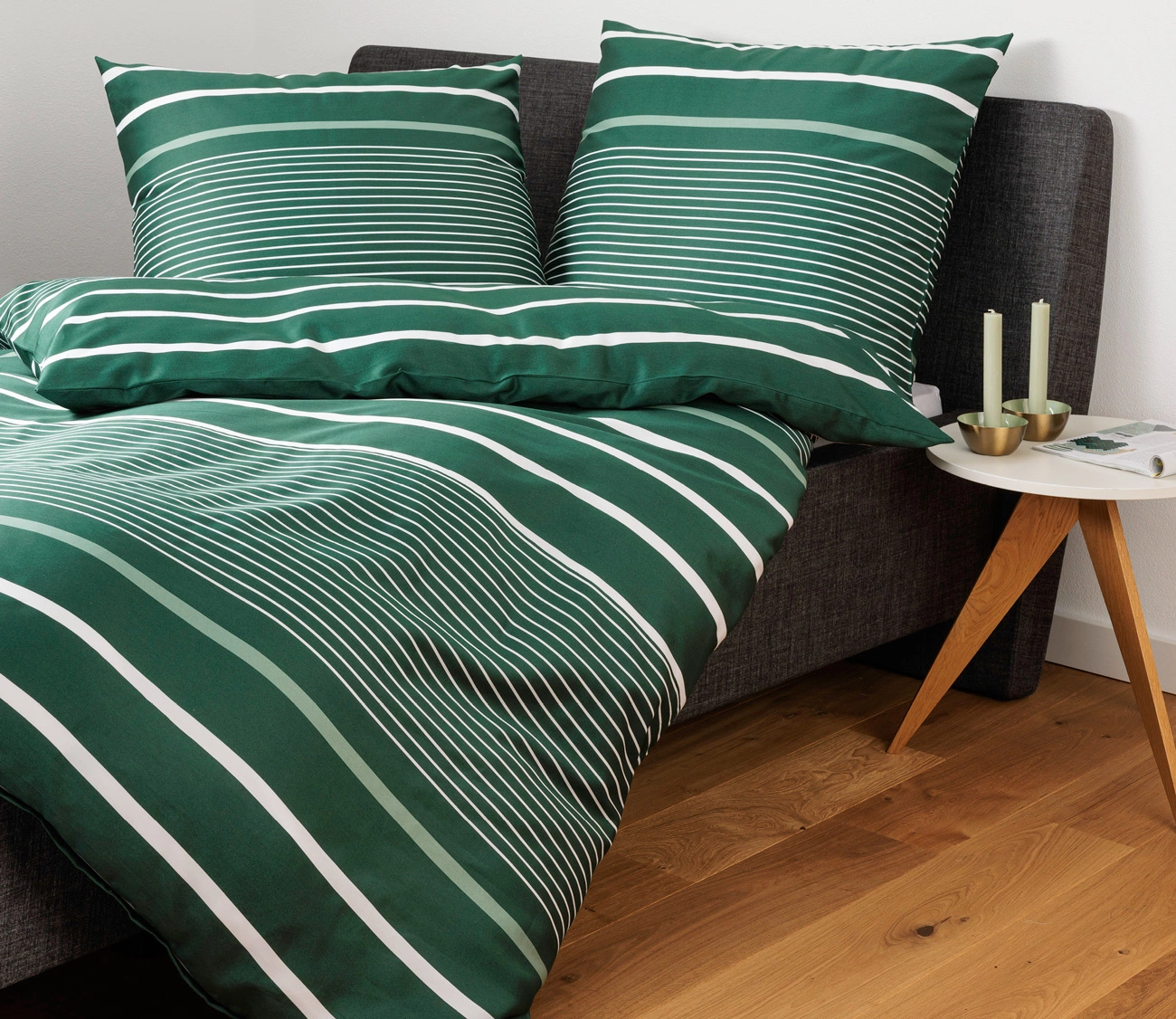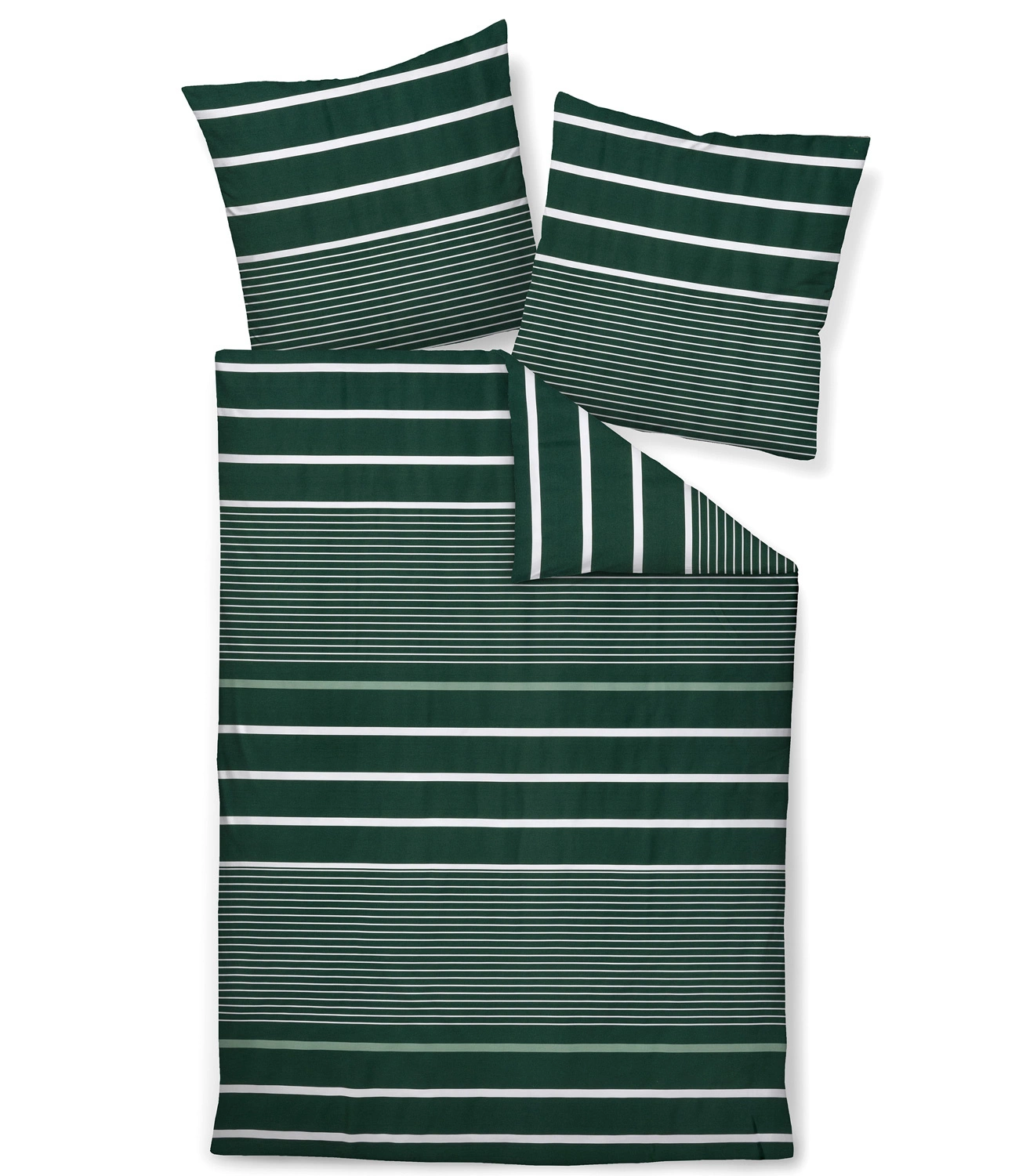 Pościel JD 87105-06 marki Janine. Wzór w poprzeczne pasy różnej szerokości w odcieniach zieleni i bieli. Wykonana ze 100% satyny bawełnianej. Dzięki procesowi merceryzacji pościel zachwyca subtelnym połyskiem. Łatwa w pielęgnacji, zapinana na zamek błyskawiczny. Lekka i przyjemna w dotyku.