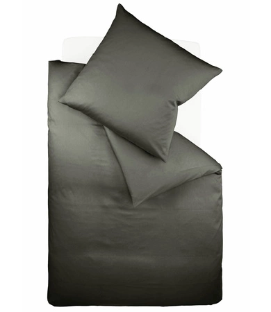 Jednobarwna, gładka pościel z tkaniny jerseyowej, model Colours 9200 marki Fleuresse. Kolor antracytowy. Wykonana z 100% bawełny mako, lekko ciągnąca, bardzo przyjemna w dotyku. Nie wymaga prasowania i na długo utrzymuje kolor i formę.