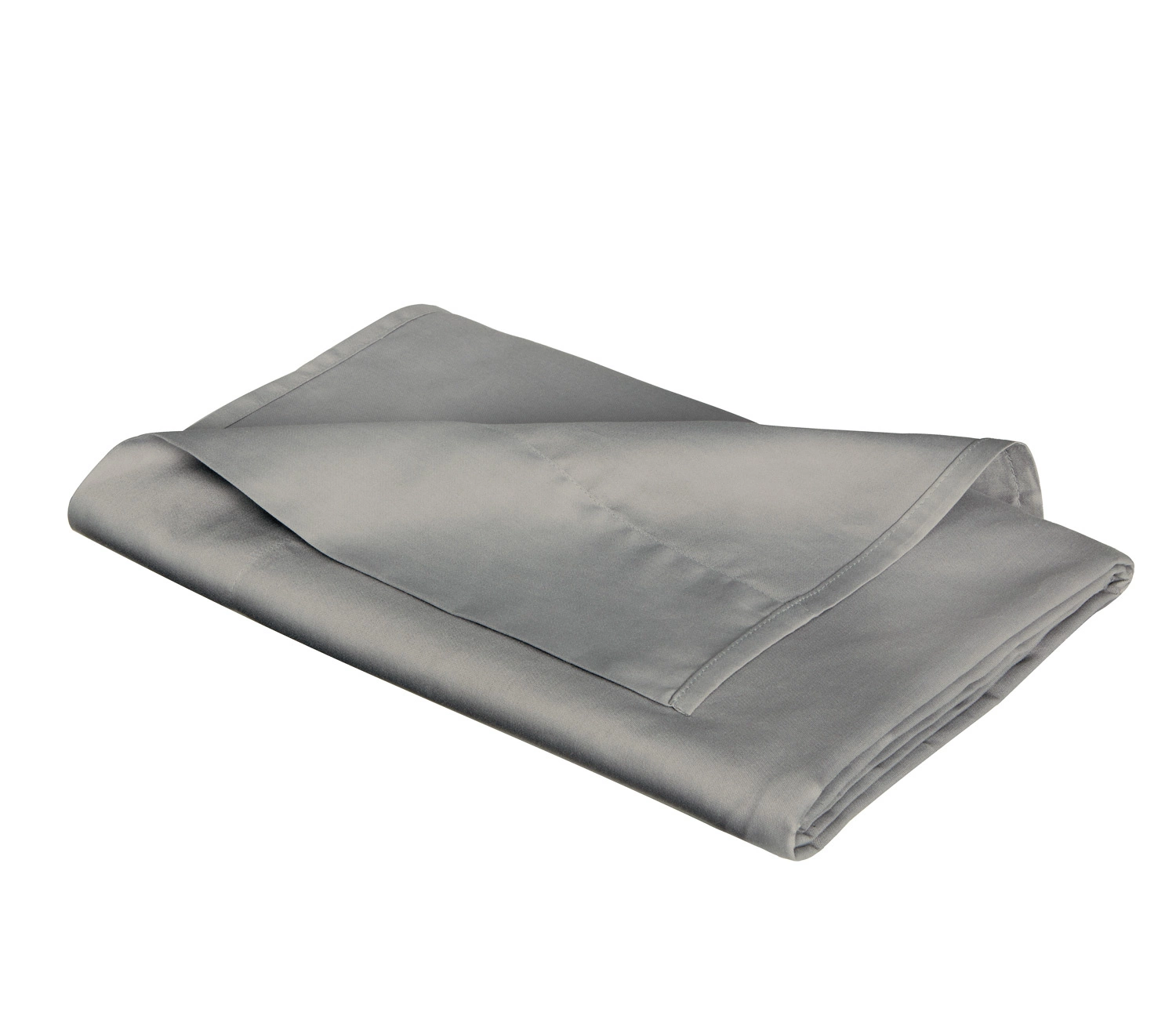 Prześcieradło satynowe bez gumki, model Colours 9100 marki Fleuresse. Kolor stalowej szarości. Wykonane z wysokiej jakości satyny bawełnianej (bawełna 100%). Merceryzowane da lekkiego połysku. Łatwe do prasowania.