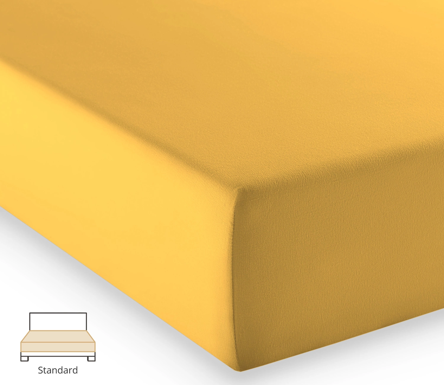 - Bardzo grube prześcieradło Fleuresse Comfort wykonane z mako-bawełny i włókna LYCRA®. Elastyczne, trwałe, dopasowuje się do materaca, nie wymaga prasowania. Perfekcyjna jakość i komfort snu. Kolor słoneczny żółty. Maksymalna wysokość materaca - 26 cm.
