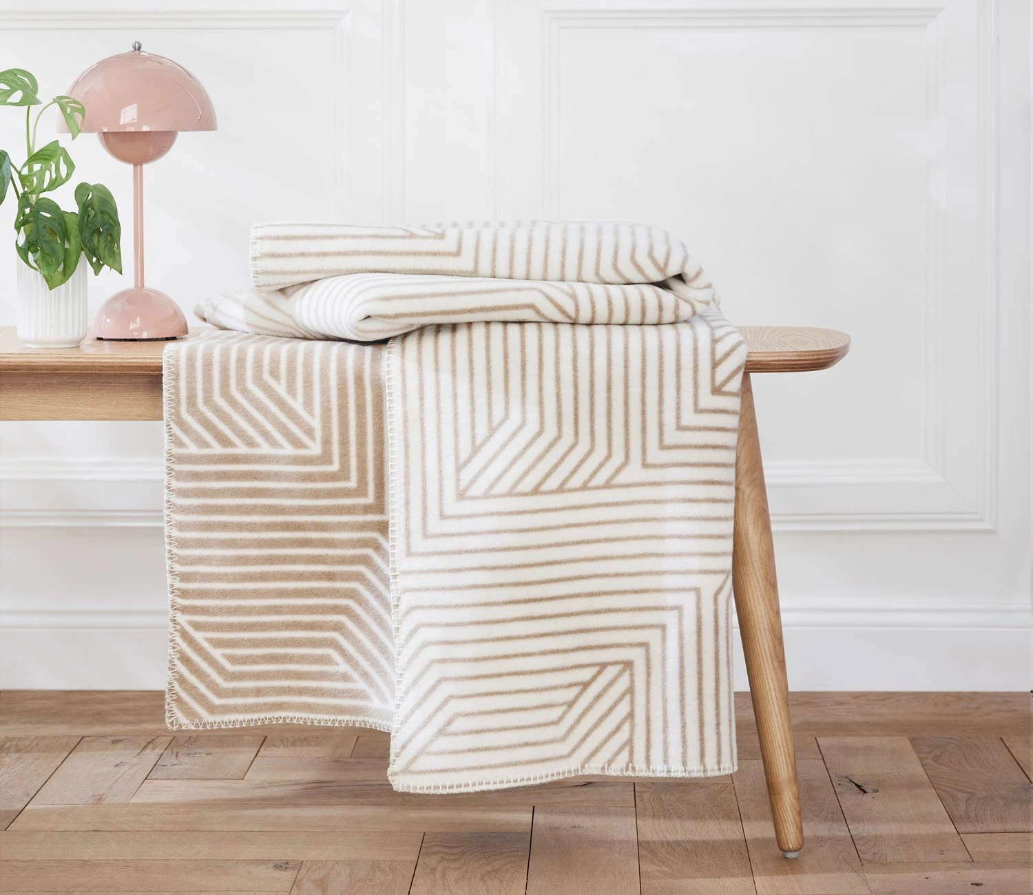 Koc Verona marki Ibena to elegancki, dwustronny dodatek do wnętrza, który zachwyca nowoczesnym wzorem w odcieniach bieli i beżu. Jego subtelna kolorystyka i geometryczny design nadają ponadczasowego charakteru każdej aranżacji – od klasycznych po nowoczesne. Dwustronność koca pozwala na łatwą zmianę wyglądu wnętrza w zależności od potrzeb i nastroju, wprowadzając przy tym przytulną atmosferę i stylową harmonię.