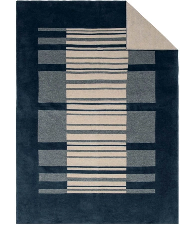 Koc Corato marki Ibena to elegancki, dwustronny dodatek do wnętrza, który wyróżnia się nowoczesnym wzorem w różnorodne pasy w odcieniach beżu i granatu. Kontrastowe, ale stonowane kolory tworzą harmonijną kompozycję, która nadaje wnętrzu głębi i wyrafinowanego charakteru. Geometryczne pasy o zróżnicowanej szerokości wprowadzają rytm i dynamikę, doskonale wpisując się zarówno w klasyczne, jak i nowoczesne aranżacje.