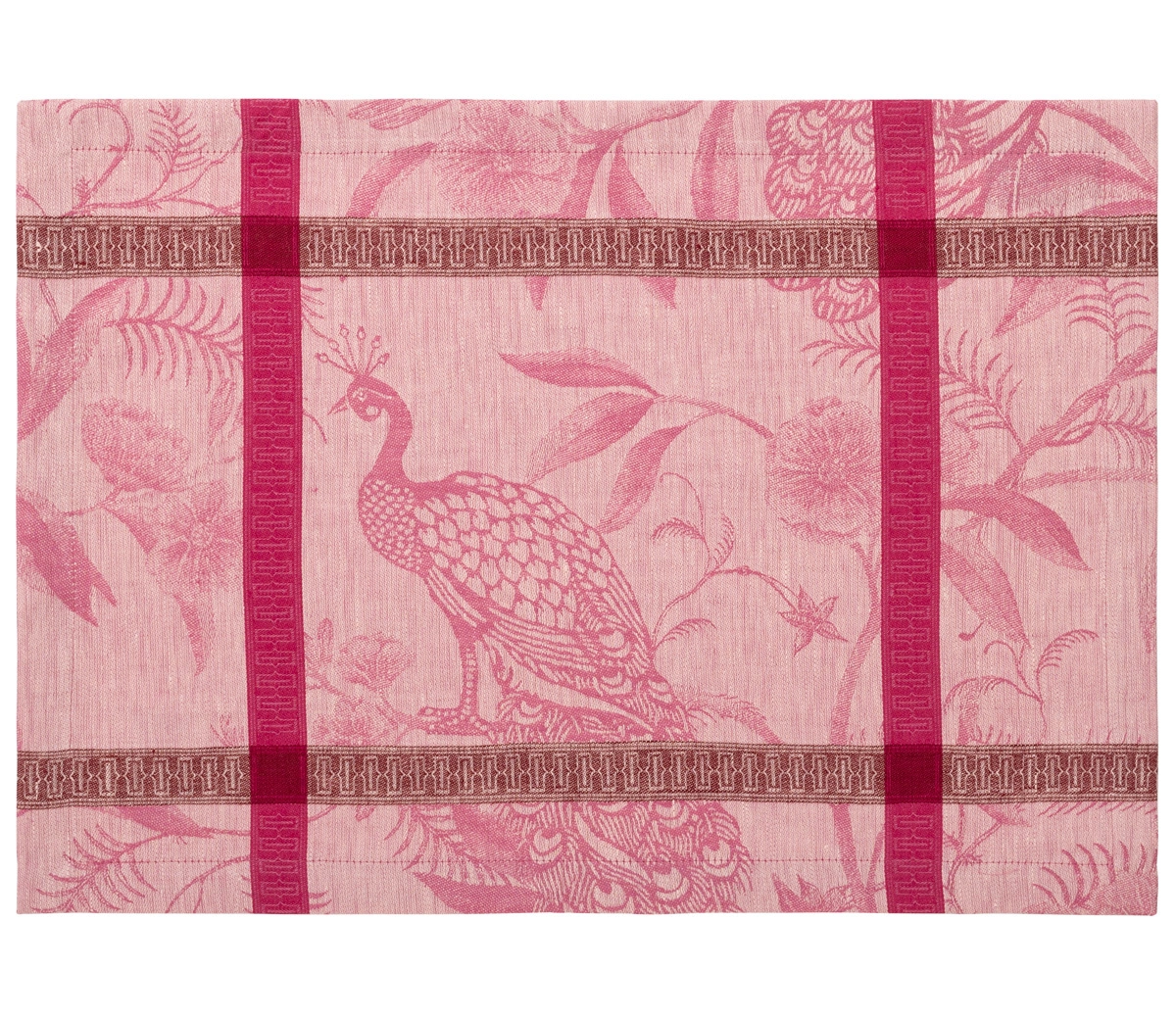 - Eleganckie podkładki na stół, wykonane w 100% z lnu z plamoodpornym wykończeniem - À L'orangerie Magnolia, z motywem pawia, inspirowane francuskim ogrodem. Kolor różowy. Łatwe do prasowania – idealne na wyjątkowe okazje i codzienny styl z klasą.