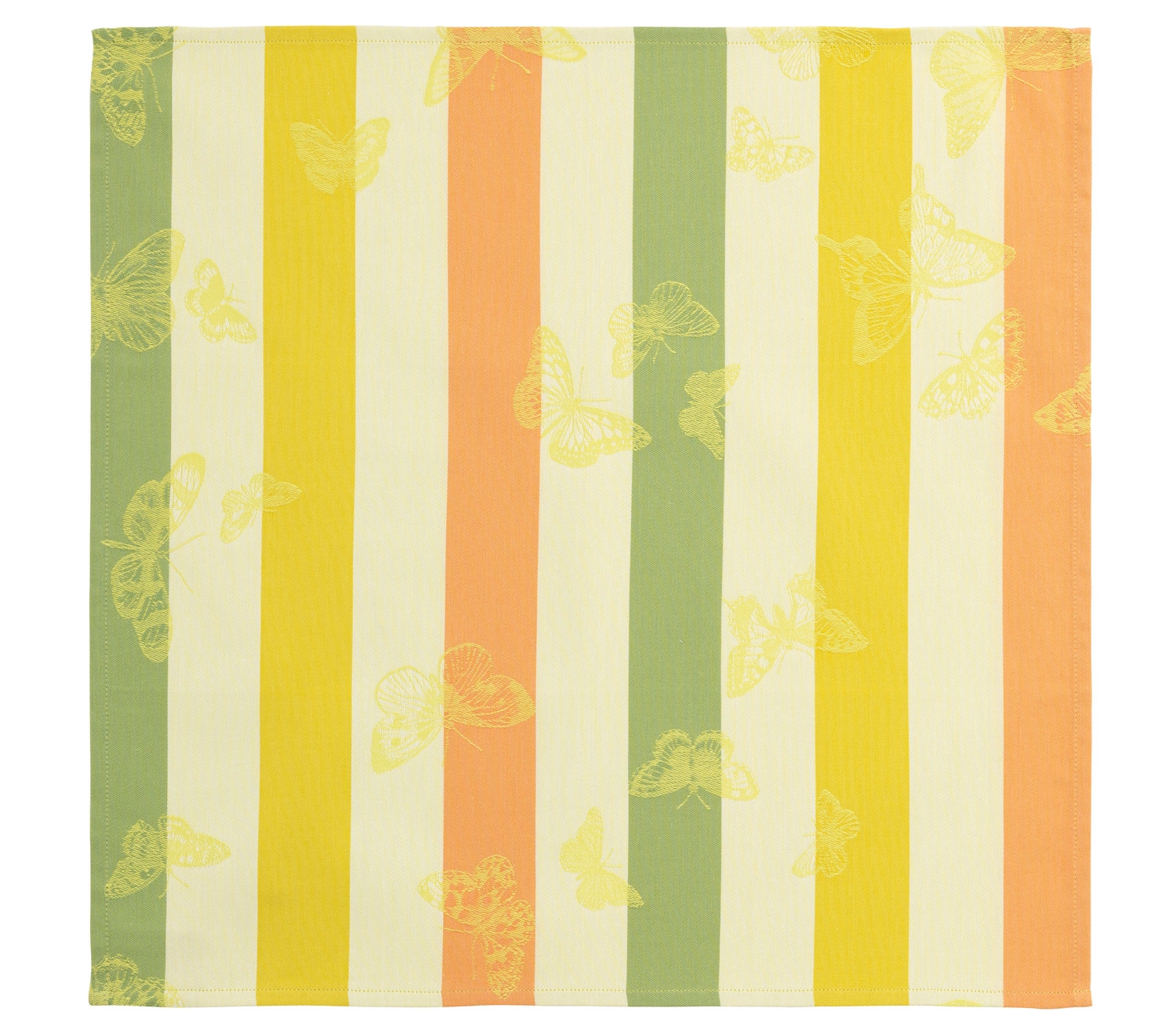 - Bawełniane serwetki Bal Des Papillons Citrus w motyle i kolorowe cytrusowe pasy. Wykonane z czesanej bawełny o długich włóknach, odporny na deformacje, o wyjątkowej trwałości i niezwykłej precyzji wzoru, poddane technologii Irretrex.