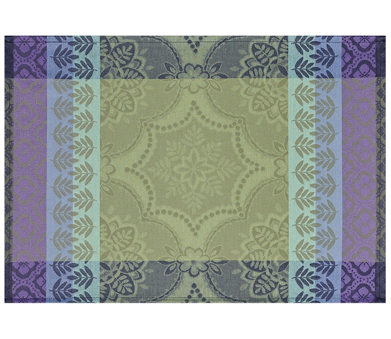 - Podkładki na stół Bastide inspirowane indyjskimi motywami w kolorze zielono-fioletowym. Wykonane są z wysokiej jakości bawełny i pokryte cienką warstwą akrylu, która sprawia, że są wodoodporne i plamoodporne. Dodatkowo mają właściwości antypoślizgowe.