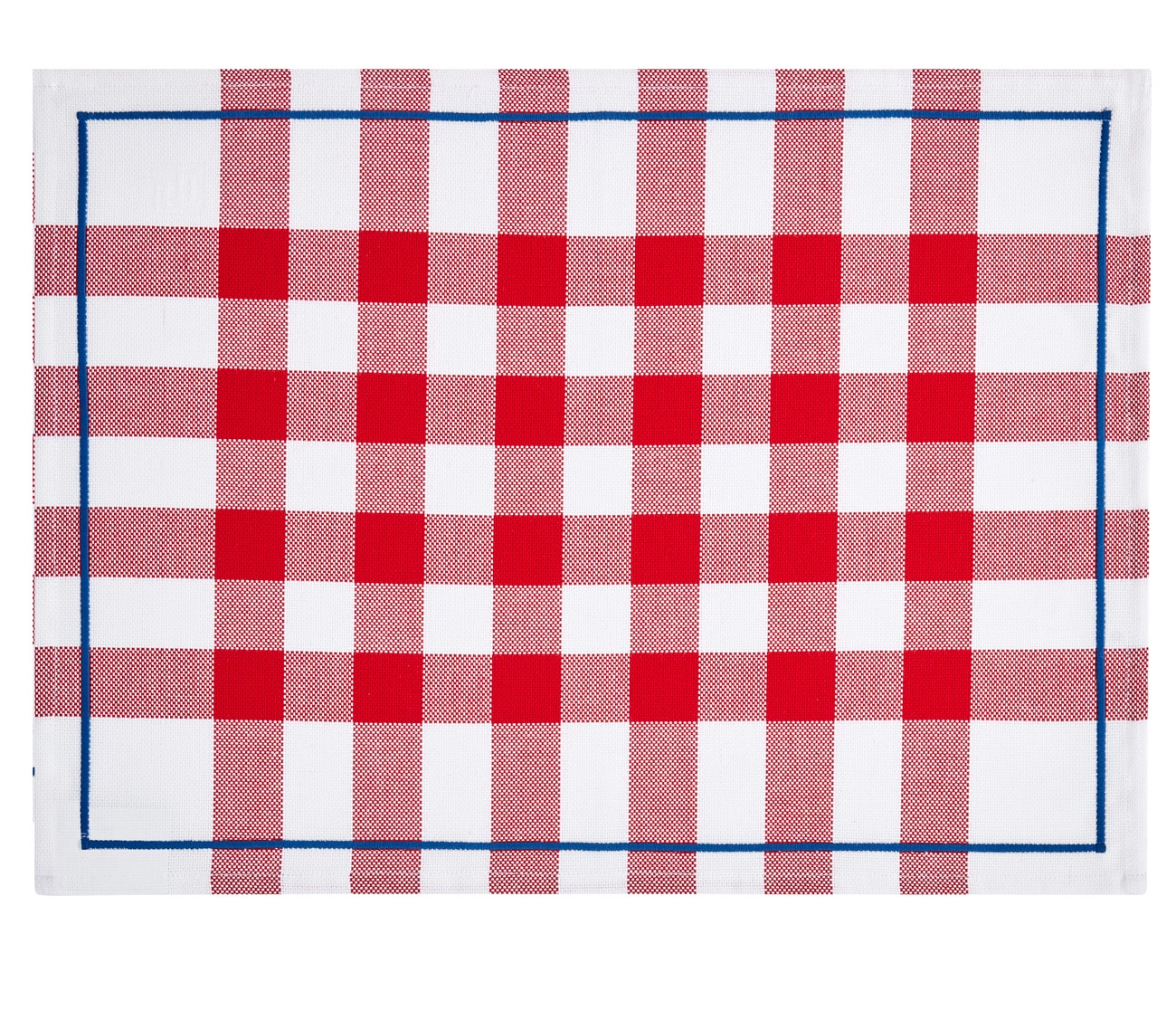 • Podkładki bawełniane Bistrot Français z czerwono-białą kratką i subtelną niebieską łamówką łączą francuski styl bistro z nowoczesnym wdziękiem. 100% czesana bawełna, produkowane we Francji. Plamoodporne wykończenie.