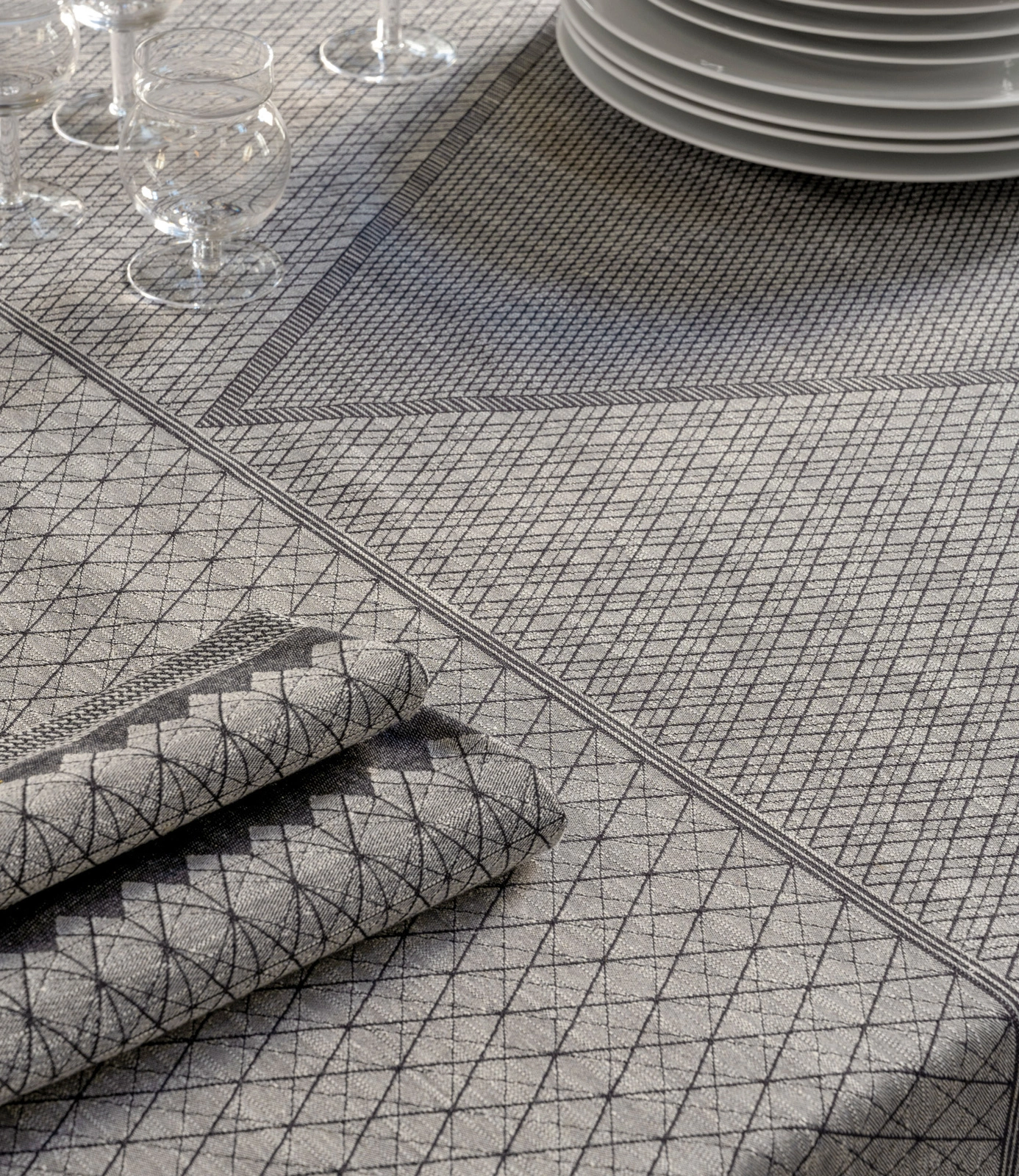 Serwetki Le Jacquard Club Re to nowoczesna elegancja w duchu eko w odcieniach szarości. Tkane z 89% bawełny i 11% lnu, zachwycają geometrycznym motywem. Prosty brzeg. Certyfikat OEKO-TEX® to gwarancja jakości i troski o środowisko.