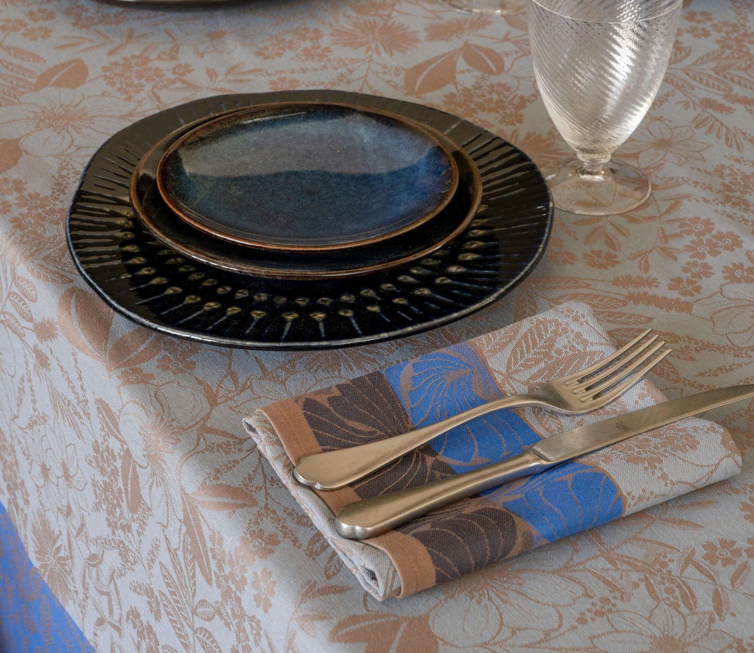 Produkty wykonane są w 100% z czesanej bawełny o długich włóknach, co zapewnia niezwykłą miękkość, odporność na zużycie i doskonałą jakość powierzchni. Delikatność przędzy nadaje tkaninie wyjątkowy blask i pozwala na niezwykle precyzyjne odwzorowanie wzorów. Serwetki utkane są techniką żakardową, z kolorowymi nitkami osnowy i wątku, co nadaje im bogaty, wyrafinowany charakter.