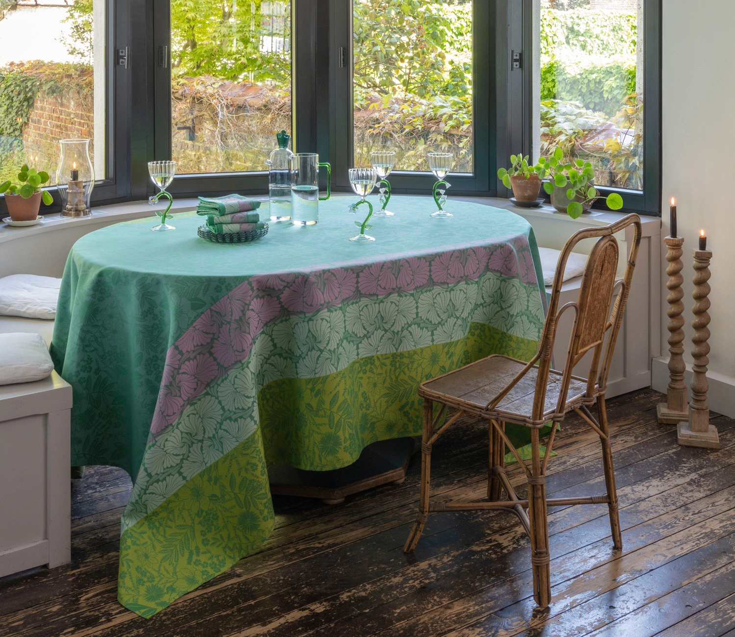 - Zanurz się w romantycznej atmosferze angielskiej wsi z obrusem Cottage w odcieniach koloru zielonego. 100% bawełna, subtelny kwiatowy wzór i niezrównana jakość Le Jacquard Français. Dodaj poezji i radości do swojego stołu!