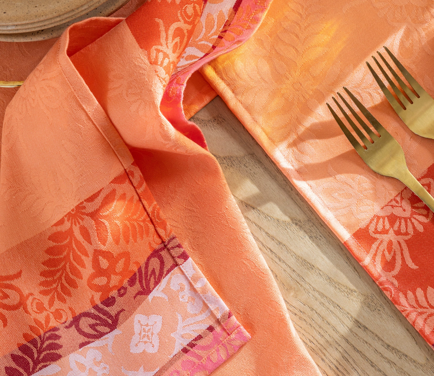 Bawełniane serwetki w odcieniach pomarańczu Mumbai Marigold inspirowane ekscytującą atmosferą odnowionej, magicznej Indii.