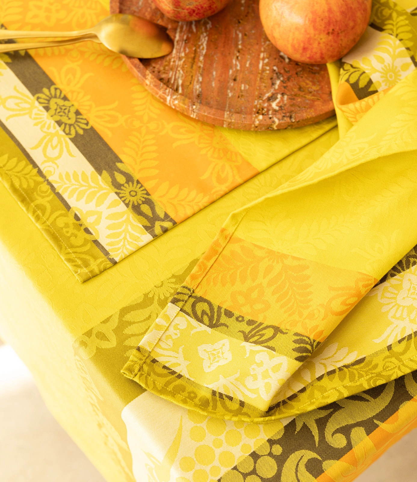 Bawełniane serwetki Mumbai Safran inspirowane ekscytującą atmosferą odnowionej, magicznej Indii. Kolor żółty.