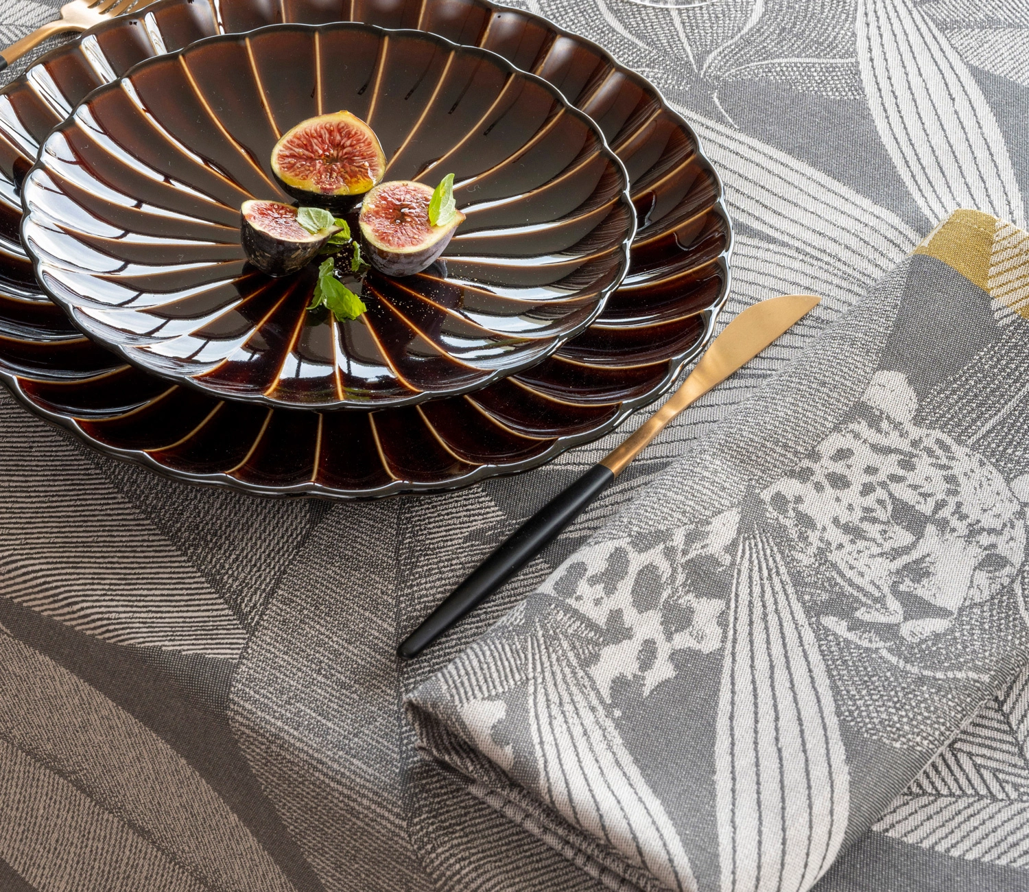 - Serwetki Nature Sauvage Elephant inspirowane motywem roślinnym różnorodnych liści oraz zwierząt. Kolor szary. Wykonane z bawełny 100%, odporne na deformacje, o wyjątkowej trwałości i niezwykłej precyzji wzoru, poddane technologii Irretrex.