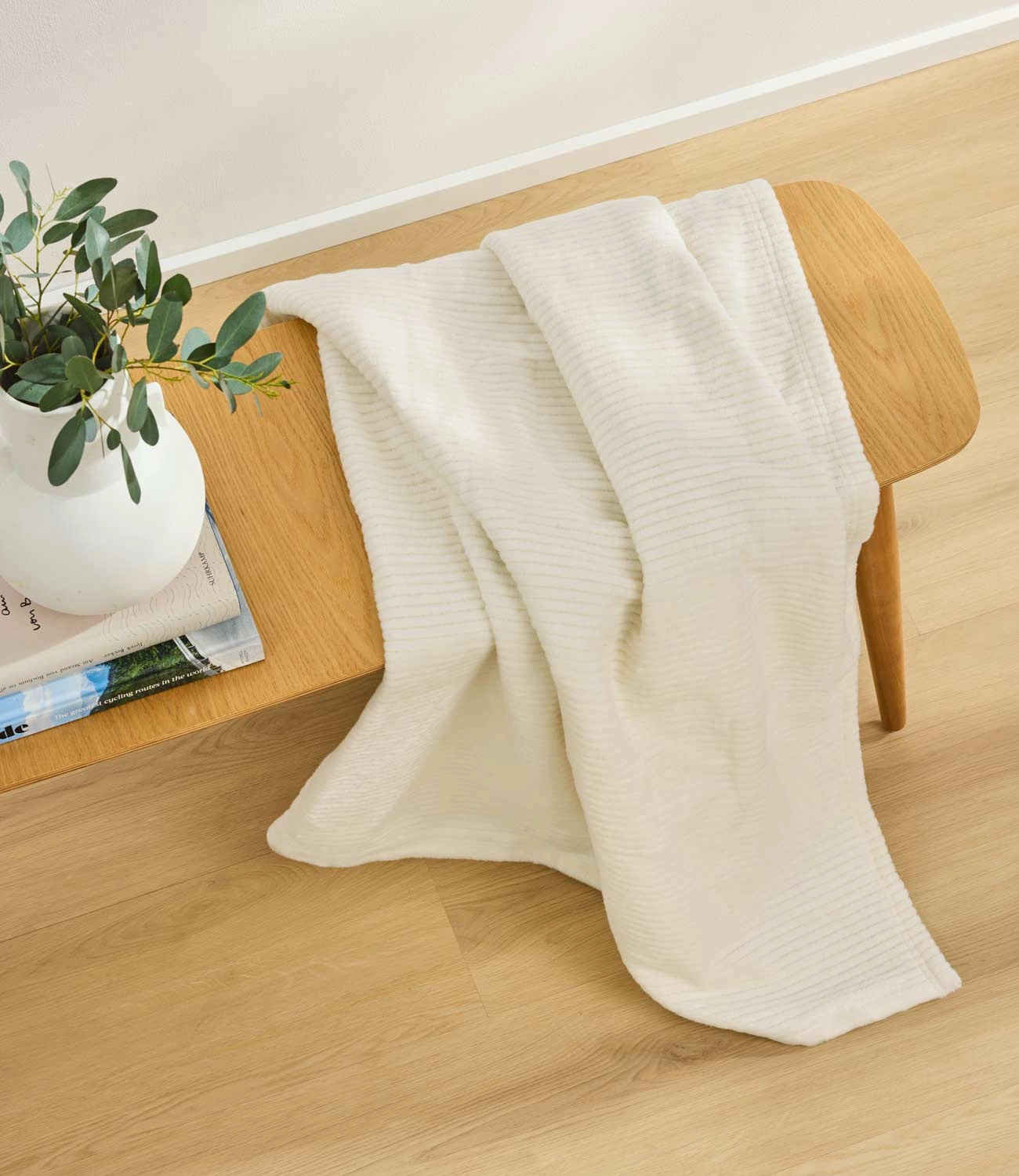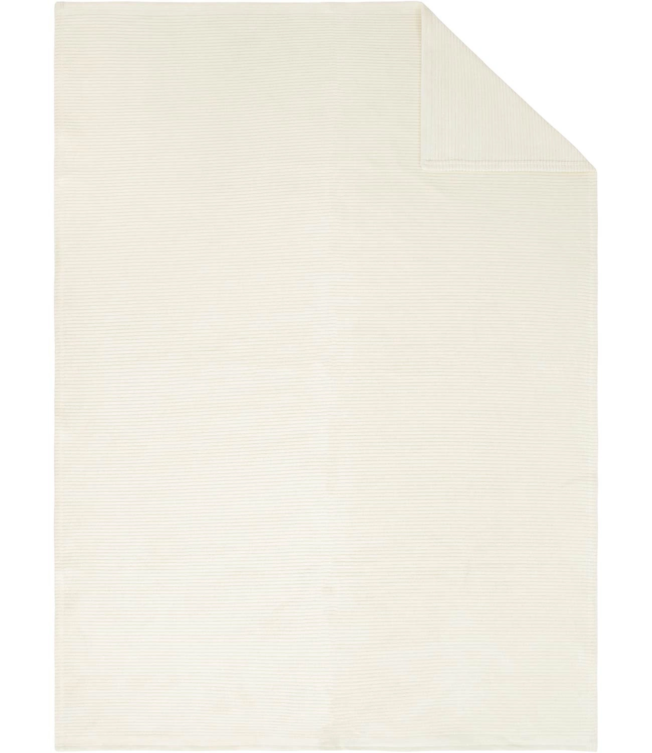 • Koc Cordoba marki Ibena o subtelnej strukturze w kolorze ecru. Wykonany z przyjemnej w dotyku mieszanki bawełny z akrylem, jest ciepły, miękki i komfortowy. Starannie wykończony zakładką, sprawdzi się jako funkcjonalny i dekoracyjny dodatek do wnętrza.