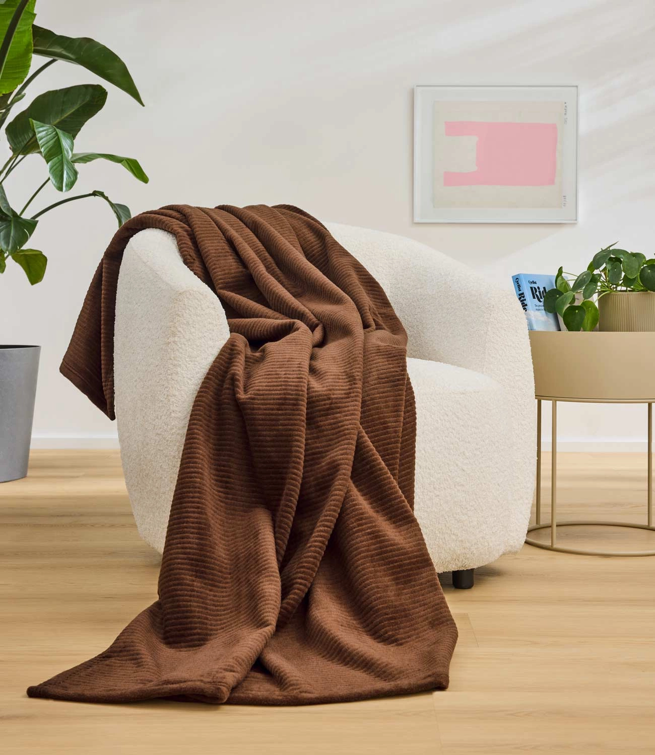 Koc Cordoba marki Ibena w brązowym kolorze to elegancki i ponadczasowy dodatek do wnętrza, który wyróżnia się subtelną strukturą typu cord – przypominającą delikatne, regularne prążki, nadające całości wyrafinowany i nowoczesny wygląd. Monochromatyczna kolorystyka podkreśla jego prostotę i uniwersalność, dzięki czemu koc doskonale odnajdzie się zarówno w minimalistycznych, jak i klasycznych aranżacjach.