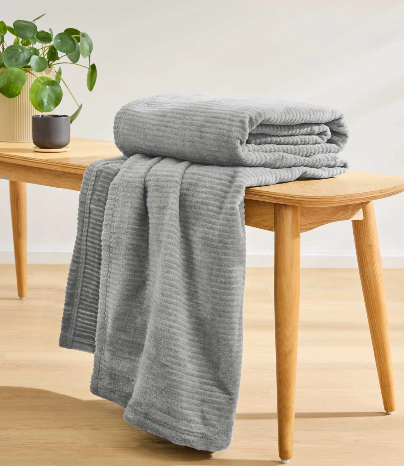 - Koc Cordoba marki Ibena o subtelnej strukturze w kolorze szarym. Wykonany z przyjemnej w dotyku mieszanki bawełny z akrylem, jest ciepły, miękki i komfortowy. Starannie wykończony zakładką, sprawdzi się jako funkcjonalny i dekoracyjny dodatek do wnętrza.