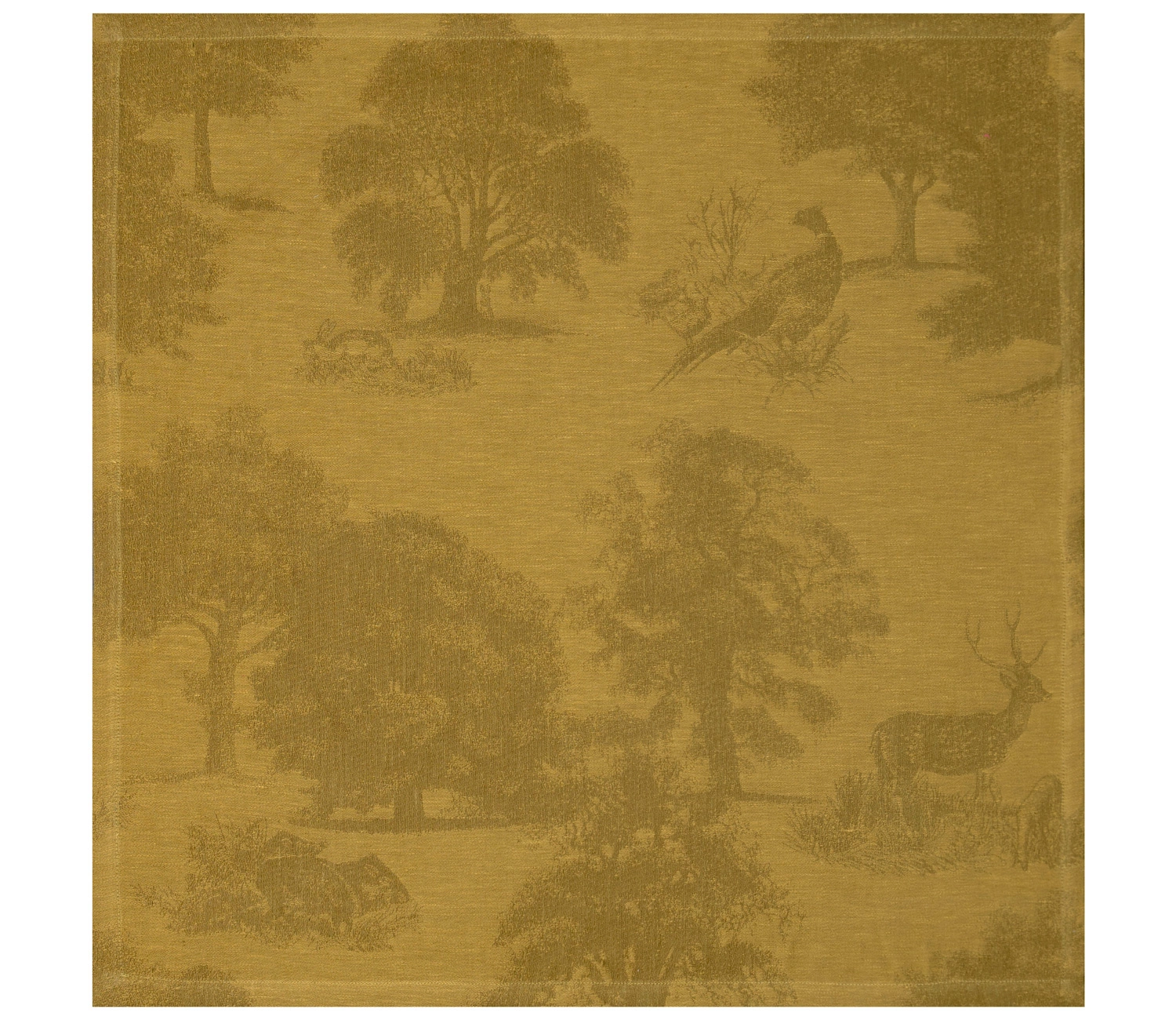 - Eleganckie, żakardowe serwetki stołowe Souveraine Or wykonane w 100% z lnu. Kolekcja przenosi nas do magicznych leśnych zakątków pełnych zająców, bażantów, saren i dzików w otoczeniu bujnej roślinności. Kolor złoty. Łatwe do prasowania.