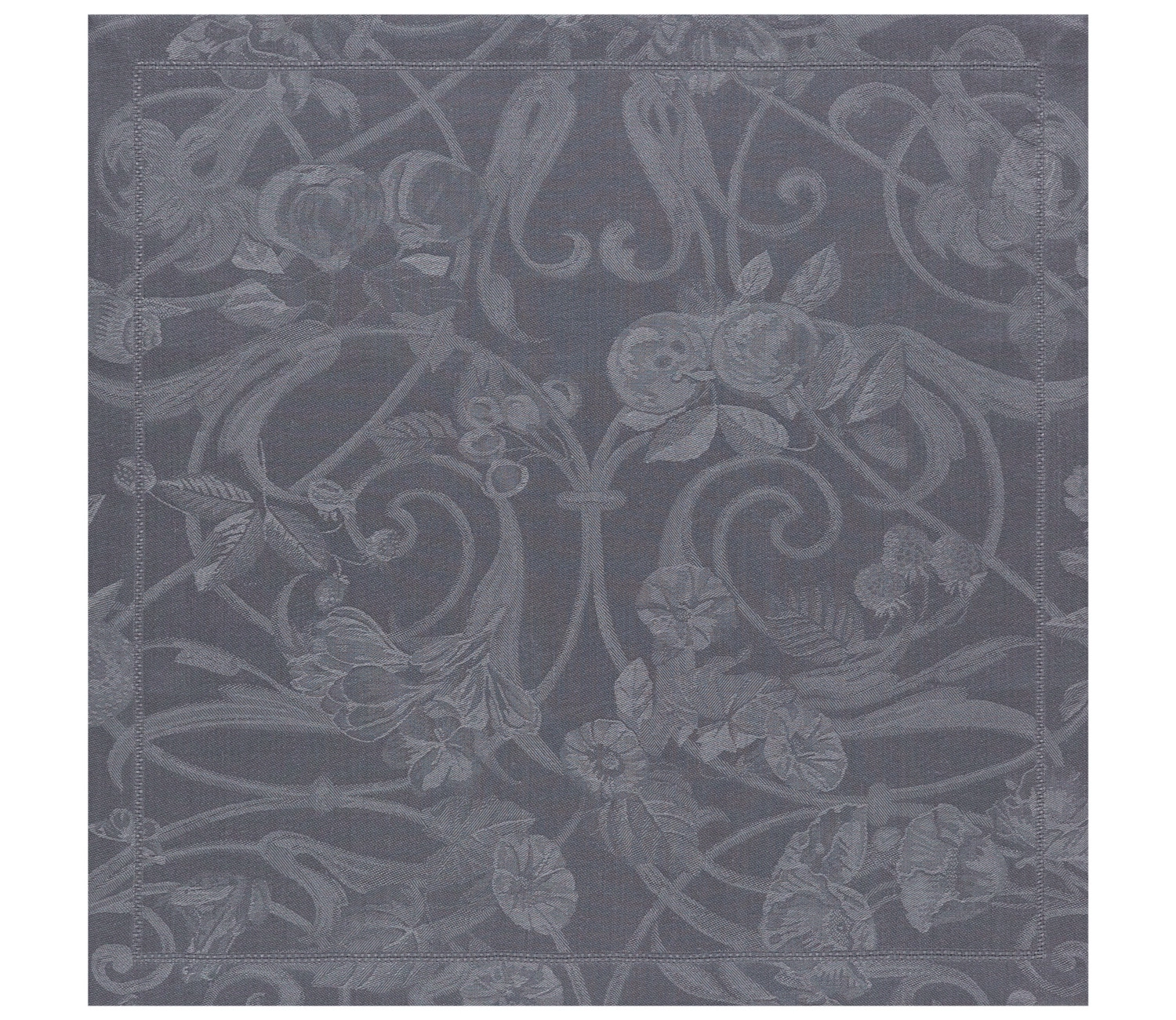 Eleganckie, żakardowe serwetki stołowe Tivoli Flanelle wykonane w 100% z lnu. Kolekcja zachwyca subtelnymi motywami kwiatowymi w kolorze szarym.
