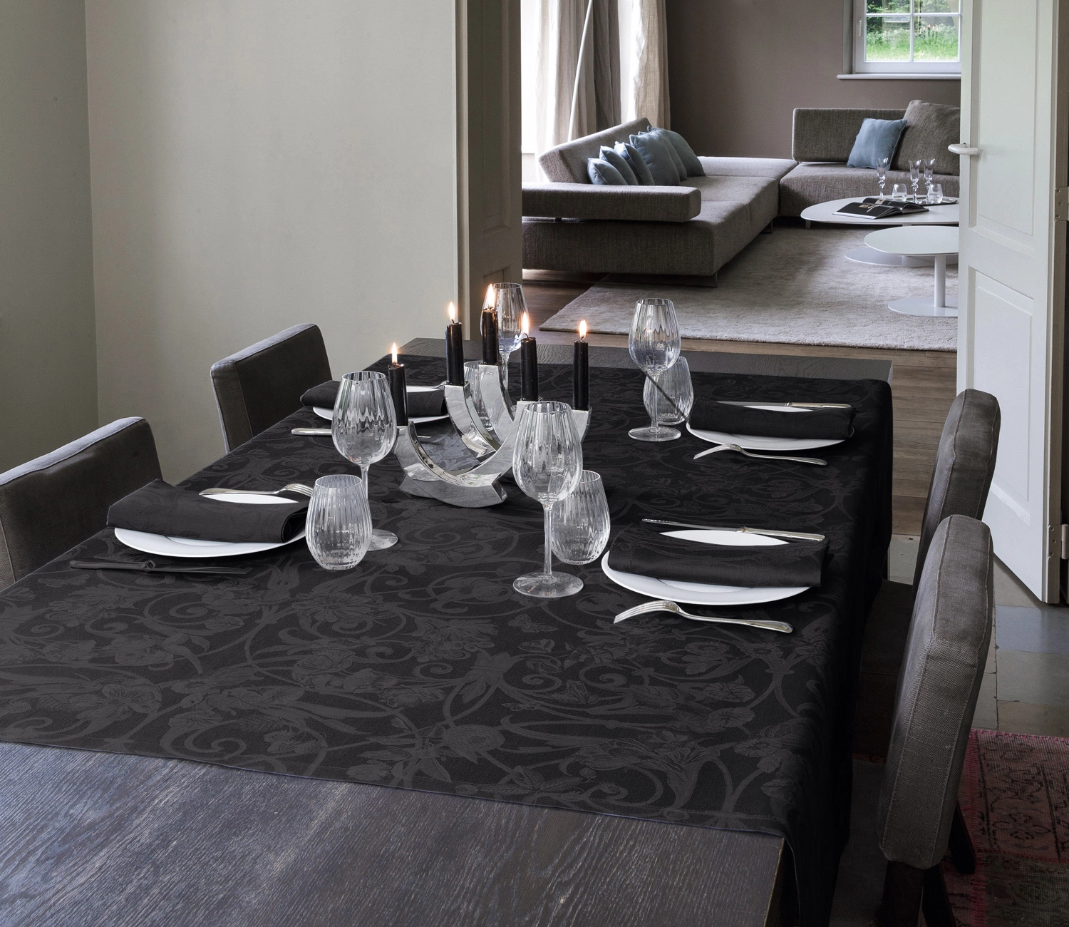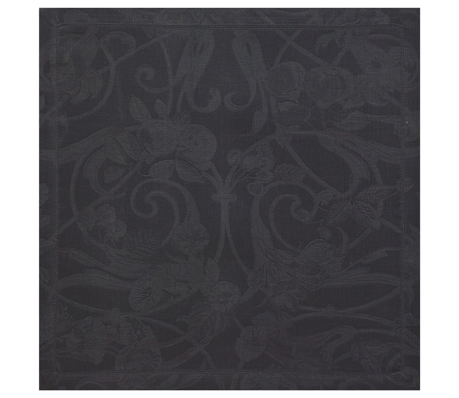 Eleganckie, żakardowe serwetki stołowe Tivoli Onyx wykonane w 100% z lnu. Kolekcja zachwyca subtelnymi motywami kwiatowymi w kolorze czarnym.