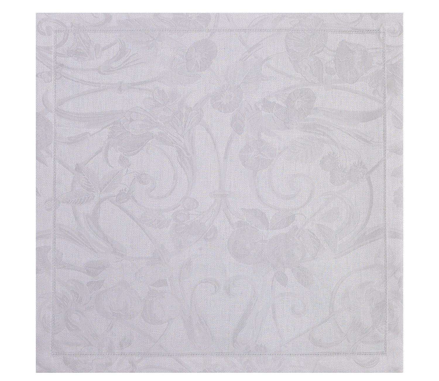 Eleganckie, żakardowe serwetki stołowe Tivoli Perle wykonane w 100% z lnu. Kolekcja zachwyca subtelnymi motywami kwiatowymi w kolorze perłowym.