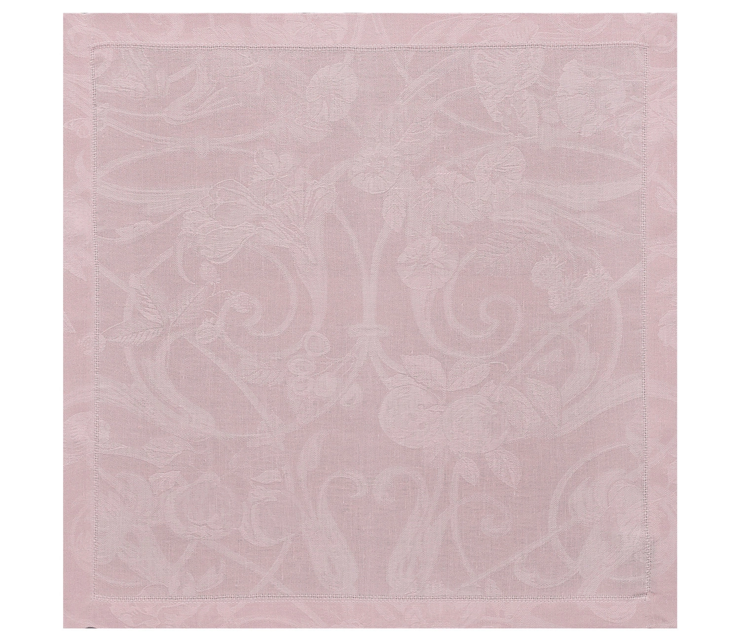 Eleganckie, żakardowe serwetki stołowe Tivoli Rose Poudre wykonane w 100% z lnu. Kolekcja zachwyca subtelnymi motywami kwiatowymi w kolorze pudrowego różu.