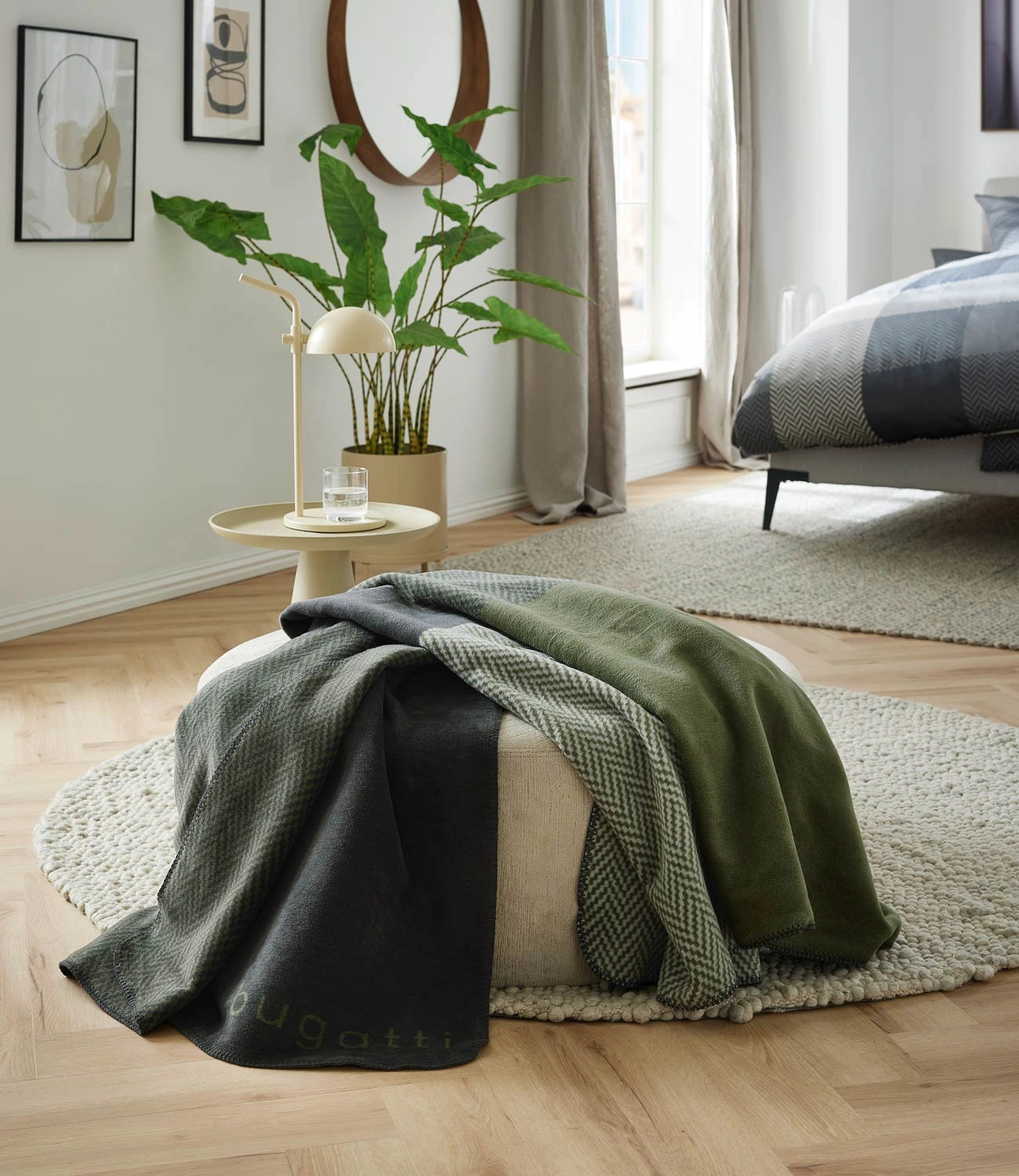 Koc bugatti to propozycja dla miłośników eleganckiego designu i najwyższej jakości wykonania. Ten dwustronny, żakardowy koc wyróżnia się dużym, nowoczesnym wzorem w kratę, który zyskuje wyjątkowy charakter dzięki subtelnej strukturze jodełki. Stonowana kolorystyka w odcieniach zieleni sprawia, że koc doskonale komponuje się zarówno z klasycznymi, jak i nowoczesnymi wnętrzami, dodając im przytulności i wyrafinowania. Całość dopełnia delikatne logo marki bugatti, umieszczone z wyczuciem i smakiem.