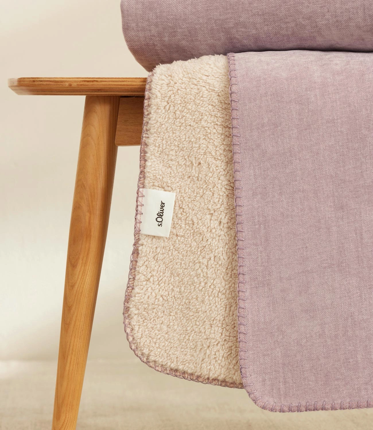 Dwustronny koc sherpa marki s.Oliver to idealne połączenie komfortu, funkcjonalności i nowoczesnego designu. Z jednej strony otula miękka, puszysta warstwa typu sherpa w eleganckim, kremowym odcieniu, która przypomina delikatne runo, zapewniając wyjątkowe ciepło i przytulność. Druga strona koca wykonana jest z gładkiej tkaniny w klasycznym fiołkowym kolorze, nadającej całości elegancki i uniwersalny charakter.