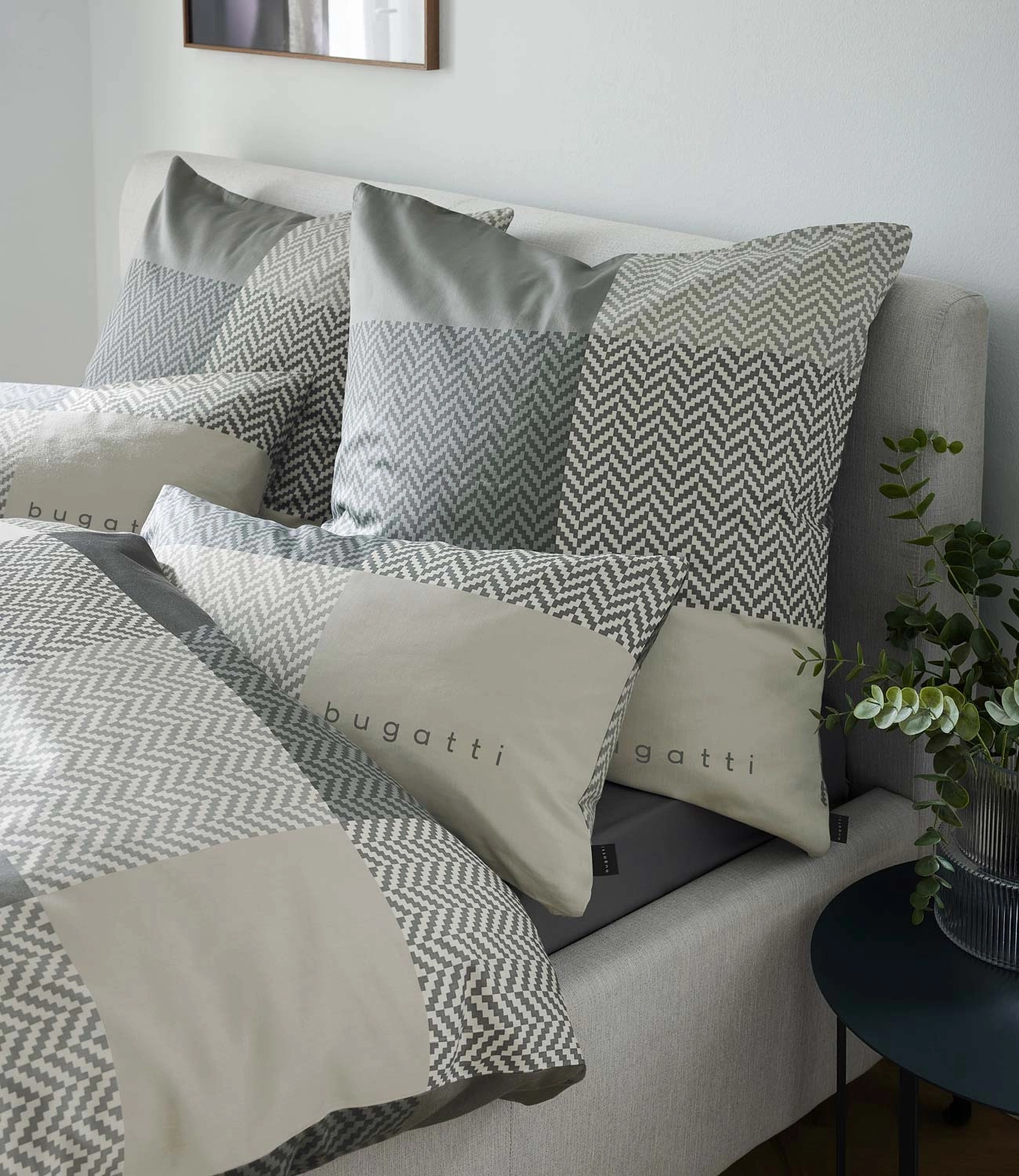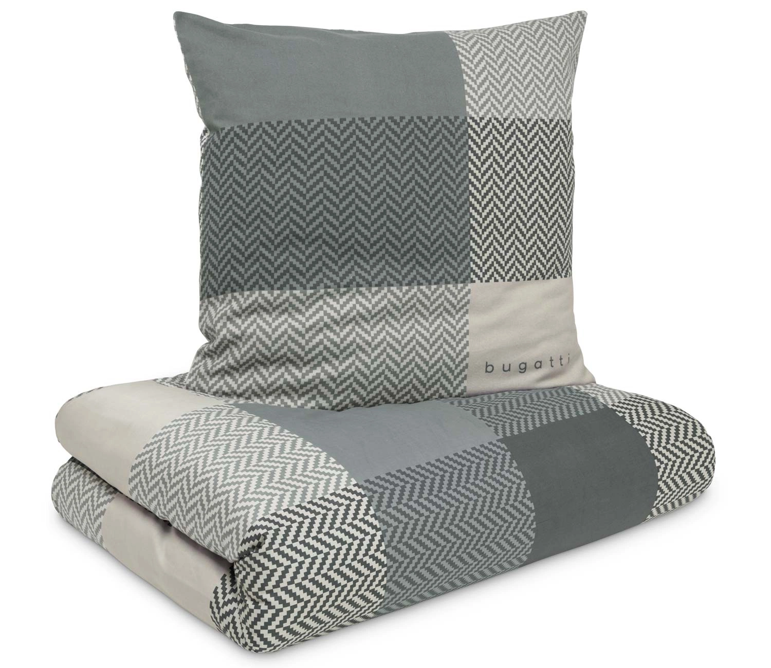 • Dwustronna pościel marki bugatti w nowoczesną, dużą kratę o subtelnej teksturze jodełkowej w odcieniach grafitu. Z jednej strony miękka, ciepła flanela, z drugiej – gładka, chłodniejsza w dotyku satyna bawełniana. Stylowa, komfortowa i funkcjonalna.