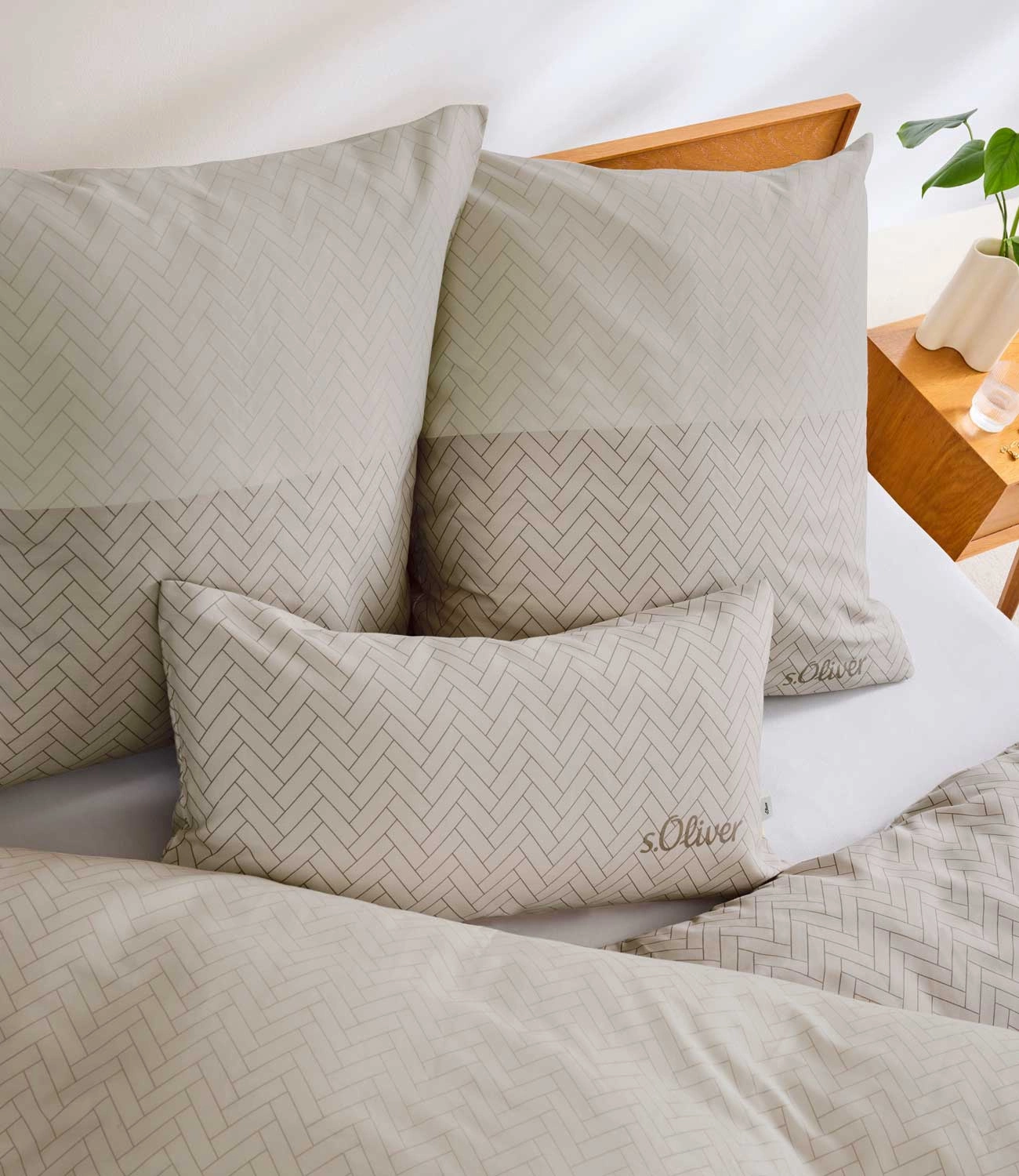 Dwustronna pościel z satyny bawełnianej marki s.Oliver to doskonała propozycja dla osób ceniących klasyczną elegancję i wysoką jakość tkanin. Subtelny wzór jodełkowy w odcieniach beżu nadaje sypialni ponadczasowy, harmonijny charakter, który wprowadza spokój i przytulność do każdego wnętrza. Dzięki dwustronnej konstrukcji można z łatwością odmienić wygląd łóżka, wybierając stronę, która najlepiej pasuje do aktualnego nastroju czy aranżacji.