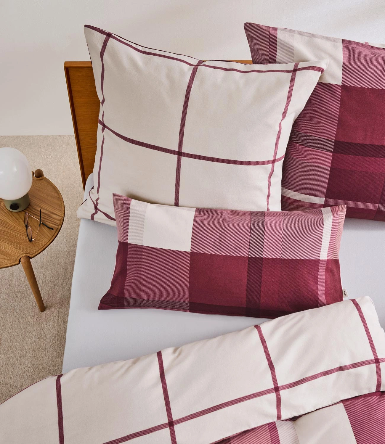 • Dwustronna pościel flanelowa marki s.Oliver. Klasyczny wzór w dużą kratę w odcieniach czerwieni i beżu nada wnętrzu przytulny, ciepły charakter. Wykonana ze 100% bawełny – miękka, ciepła i oddychająca. Zapinana na zamek błyskawiczny.