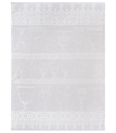 - Ściereczka kuchenna Cristal Blanc z czystego lnu z subtelną ilustracją szkła kryształowego. Miękka, chłonna i idealna do polerowania kieliszków i delikatnej zastawy. 100% europejski len, certyfikat Masters of Linen®, łatwe prasowanie. Kolor biały.