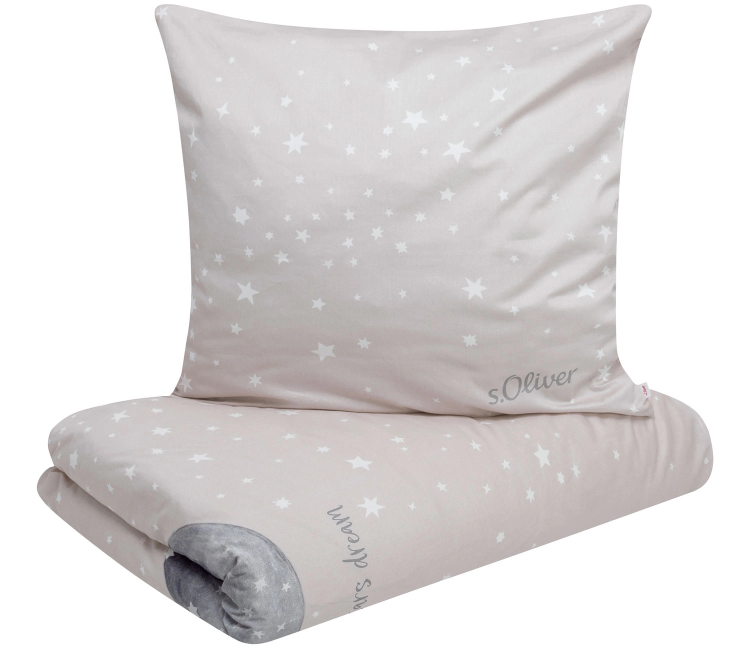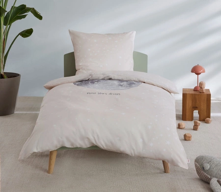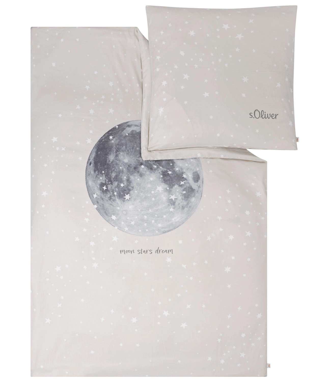 • Pościel dziecięca z satyny bawełnianej marki s.Oliver. Delikatny wzór z gwiazdkami i księżycem na ciepłym, beżowym tle wprowadza do pokoju spokojny, nocny klimat. Wykonana ze 100% bawełny – miękka, gładka i przewiewna. Zapinana na zamek błyskawiczny.