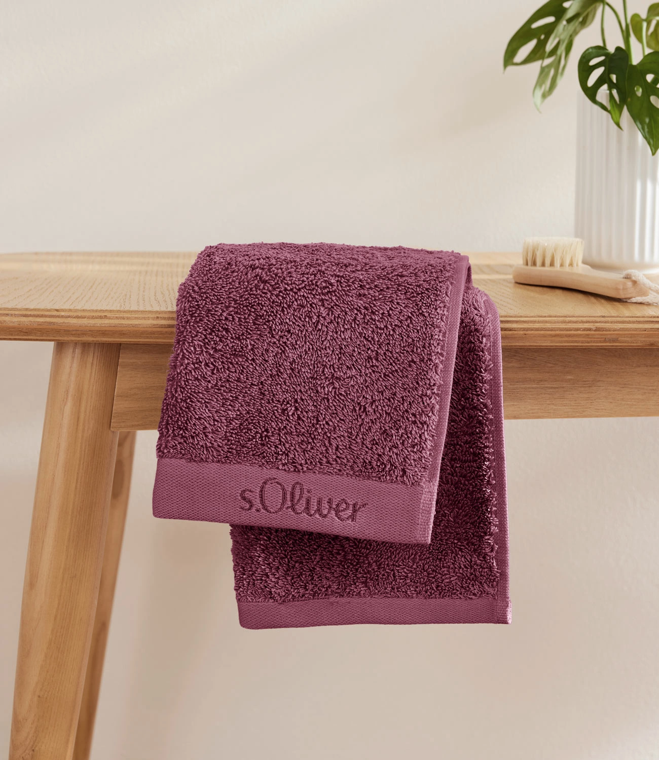 • Ręcznik s.Oliver Uni to połączenie luksusu i funkcjonalności. Kolor jagodowy. Wykonany z 100% bawełny o gramaturze 600 g/m², jest miękki, chłonny i szybko schnie. Elegancki design z logo s.Oliver sprawia, że jest to stylowy dodatek do każdej łazienki.