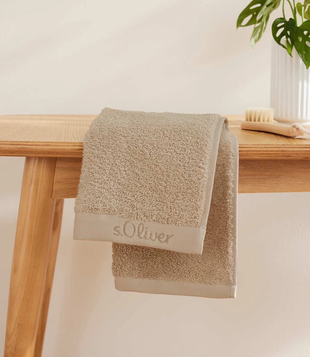 - Ręcznik s.Oliver Uni to połączenie luksusu i funkcjonalności. Kolor beżowy. Wykonany z 100% bawełny o gramaturze 600 g/m², jest miękki, chłonny i szybko schnie. Elegancki design z logo s.Oliver sprawia, że jest to stylowy dodatek do każdej łazienki.