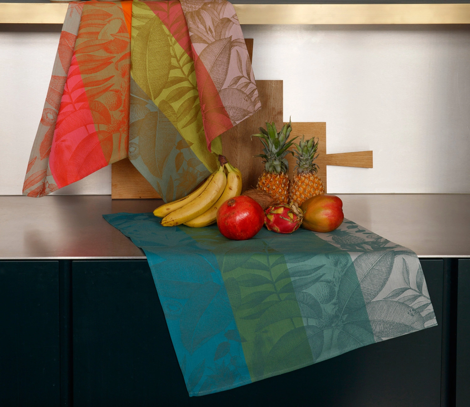 Ożyw swoją kuchnię elegancką ściereczką kuchenną Le Jacquard Français w kolorowe pasy z motywem egzotycznych owoców. Delikatny design w połączeniu z najwyższą jakością wykonania sprawia, że to nie tylko praktyczny dodatek, ale też stylowy element wystroju.