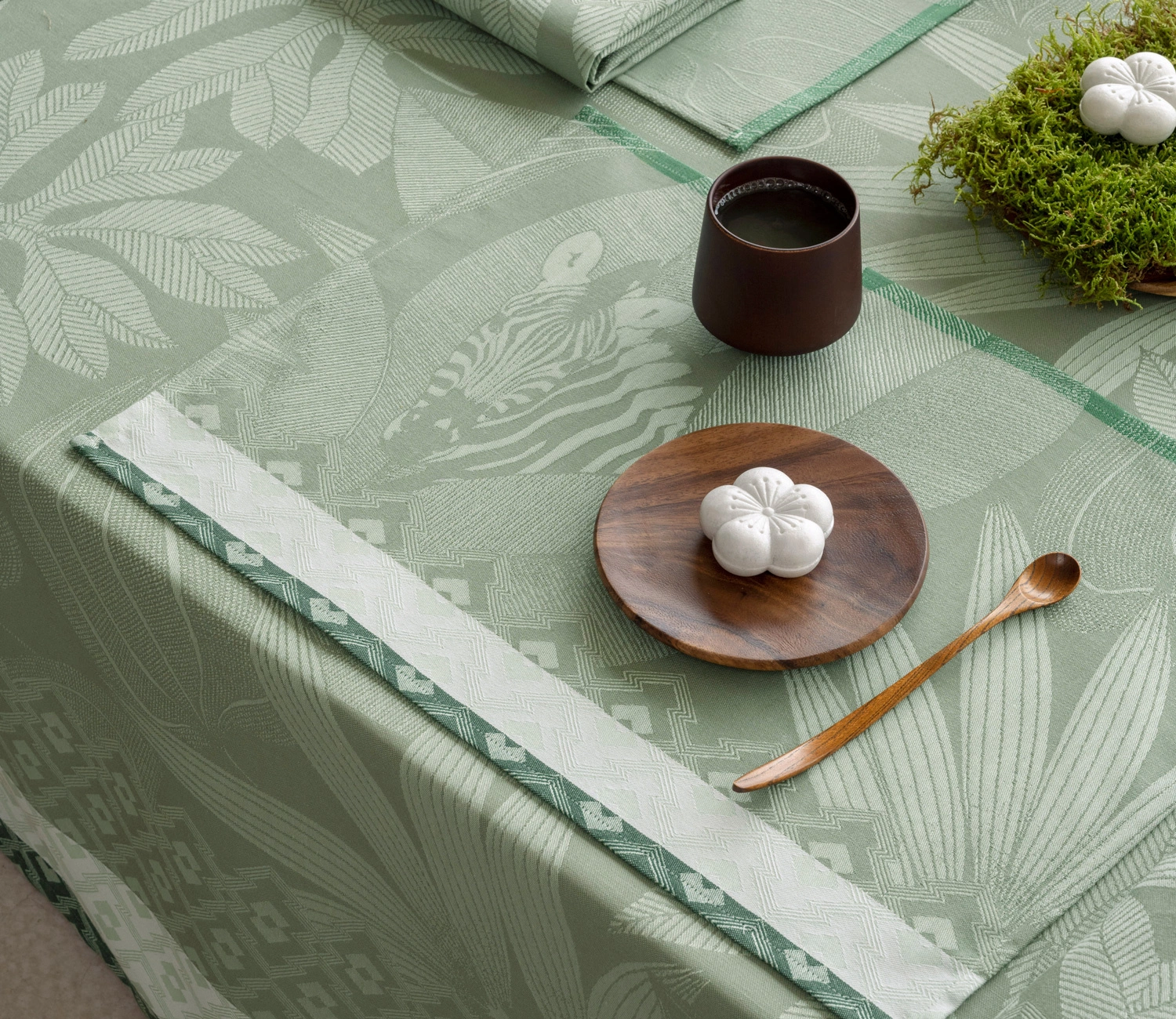 Podkładki na stół Nature Sauvage to ukłon w stronę natury – subtelny wzór roślinny w odcieniach koloru zielonego i precyzyjny splot żakardowy.