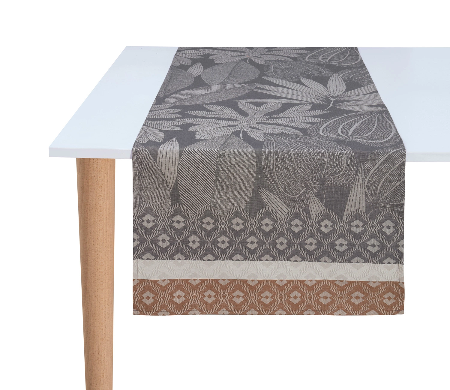Bieżnik Nature Sauvage to ukłon w stronę natury – subtelny wzór roślinny w odcieniach koloru szarego.