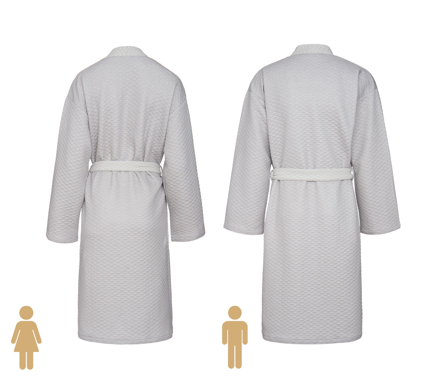- Jasno-szary szlafrok unisex Formesse Bella Donna w klasycznym kroju kimono. Wykonany z mieszanki TENCEL™ Lyocell, bawełny i poliestru z recyklingu, wzbogaconej aloesem i olejkiem arganowym. Posiada pasek w talii, dwie kieszenie i eleganckie wykończenie.