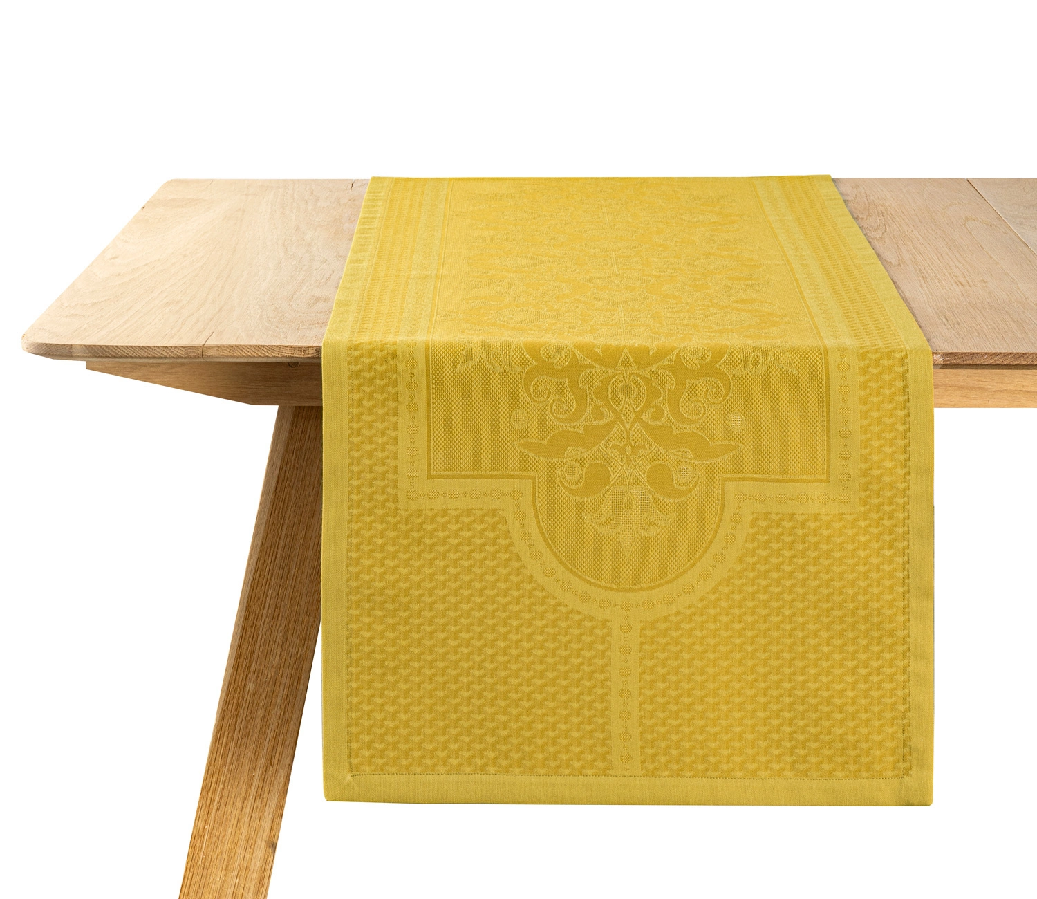 - Bieżnik Palais Vénitien Ocre – elegancja inspirowana pałacami Wenecji. Barokowe i geometryczne wzory, czesana bawełna i staranne wykończenie. Jakość i bezpieczeństwo potwierdzone certyfikatem OEKO-TEX® STANDARD 100. Kolor ochry.