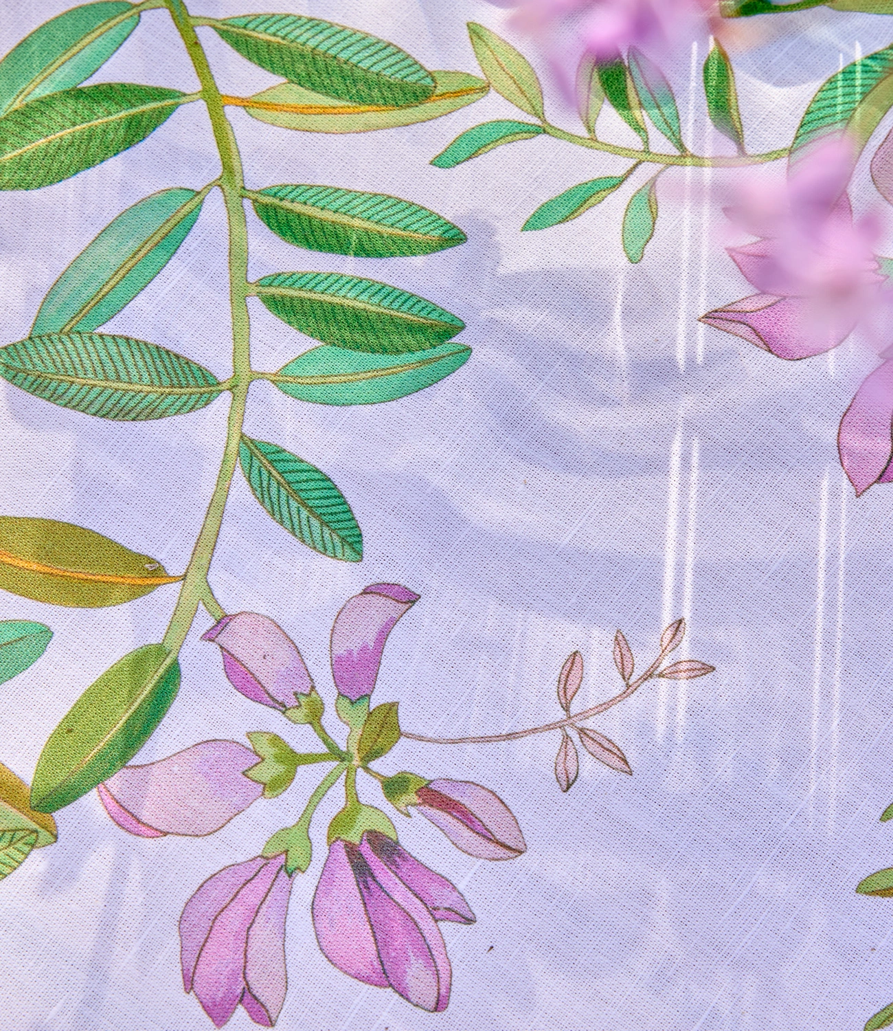 Bieżnik Pois de Senteur to hołd dla delikatności ogrodu – lekkie, pastelowe groszki w odcieniach różu i zieleni splatają się na tkaninie w subtelnym, poetyckim stylu. Inspiracją do wzoru były pachnące groszki – symbol lekkości i romantyzmu. Dzięki nowoczesnej technologii druku cyfrowego, kolory zachwycają głębią i miękkimi przejściami tonalnymi, tworząc na stole atmosferę świeżości i naturalności.