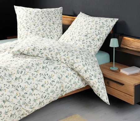 Pościel flanelowa Davos 65173-06 marki Janine. Delikatny, kwiatowy motyw w odcieniach zielono - żółtych na jasnym tle. Wykonana z wysokiej jakości flaneli, ze 100% bawełny - miękkiej i przytulnej, która jest przyjemnie ciepła i reguluje temperaturę. Idealna na jesienno-zimową porę roku. Łatwa w pielęgnacji, zapinana na zamek błyskawiczny. Nie wymaga prasowania.