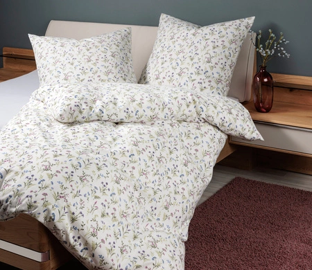 Pościel flanelowa Davos 65173-05 marki Janine. Delikatny, kwiatowy motyw w odcieniach zielono - fioletowych na jasnym tle. Wykonana z wysokiej jakości flaneli, ze 100% bawełny - miękkiej i przytulnej, która jest przyjemnie ciepła i reguluje temperaturę. Idealna na jesienno-zimową porę roku. Łatwa w pielęgnacji, zapinana na zamek błyskawiczny. Nie wymaga prasowania.