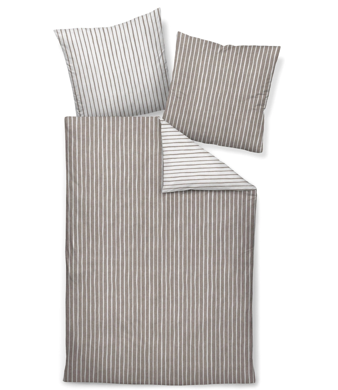 Pościel flanelowa dwustronna Davos 65170-07 marki Janine. Z jednej strony posiada wzór w białe paski, z drugiej strony pasy w kolorze beżowym. Wykonana z wysokiej jakości flaneli, ze 100% bawełny - miękkiej i przytulnej, która jest przyjemnie ciepła i reguluje temperaturę. Idealna na jesienno-zimową porę roku. Łatwa w pielęgnacji, zapinana na zamek błyskawiczny.