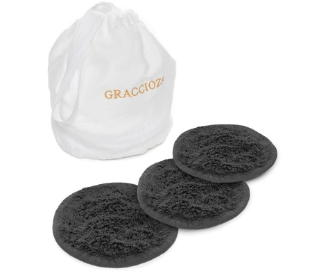 Zestaw obejmuje 10 płatków kosmetycznych w kolorze ciemno-szarym, starannie zapakowanych w luksusową lnianą torbę z logo Graccioza, dzięki czemu stanowią również doskonały pomysł na prezent. Ich wielorazowe zastosowanie wspiera ideę zrównoważonej pielęgnacji, ograniczając jednorazowy plastik i odpady.
