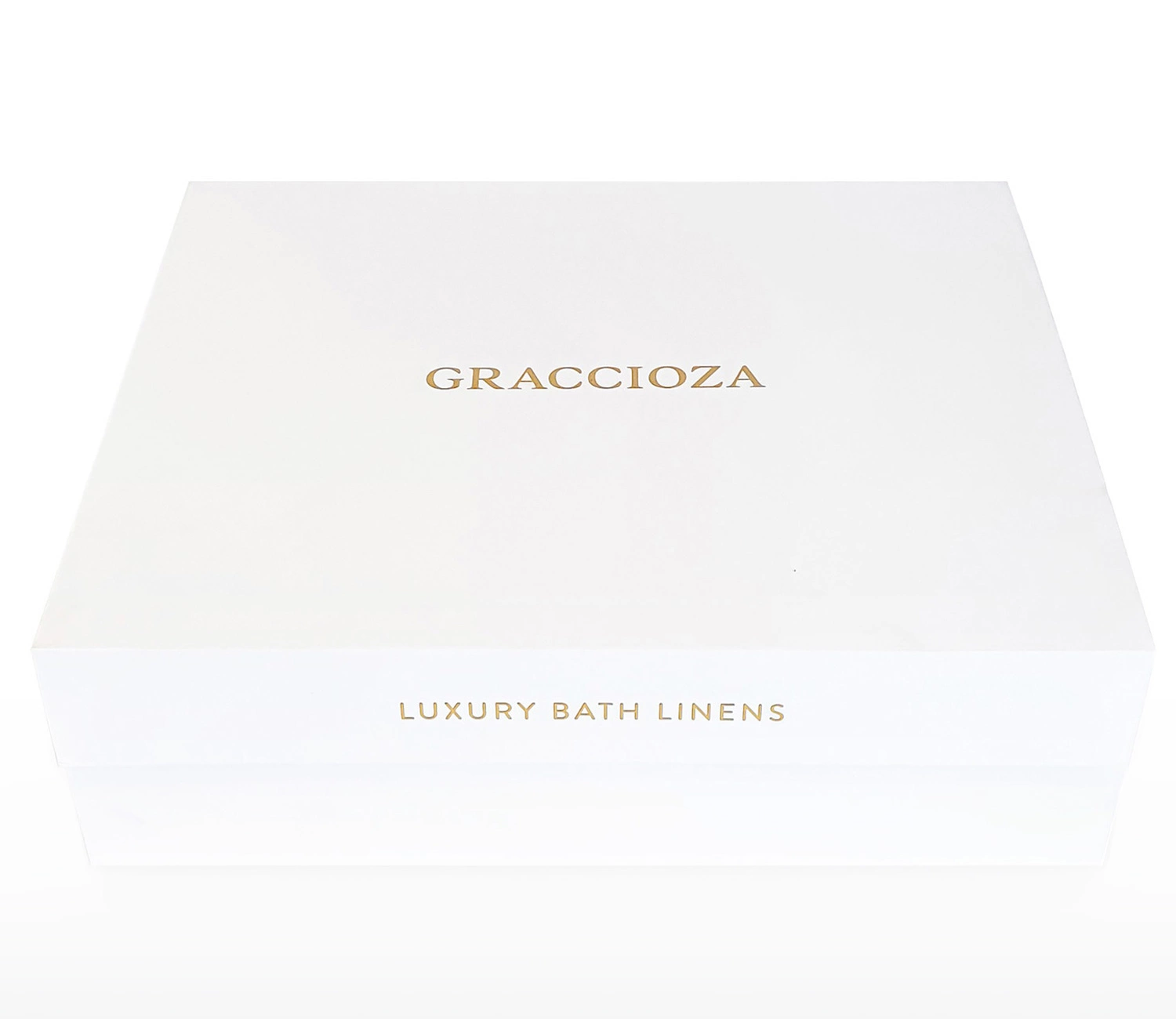 Każdy szlafrok Graccioza Egoist zapakowany jest w ekskluzywne pudełko prezentowe z logo marki, co czyni go nie tylko elementem codziennego luksusu, ale również doskonałym pomysłem na wyjątkowy podarunek.