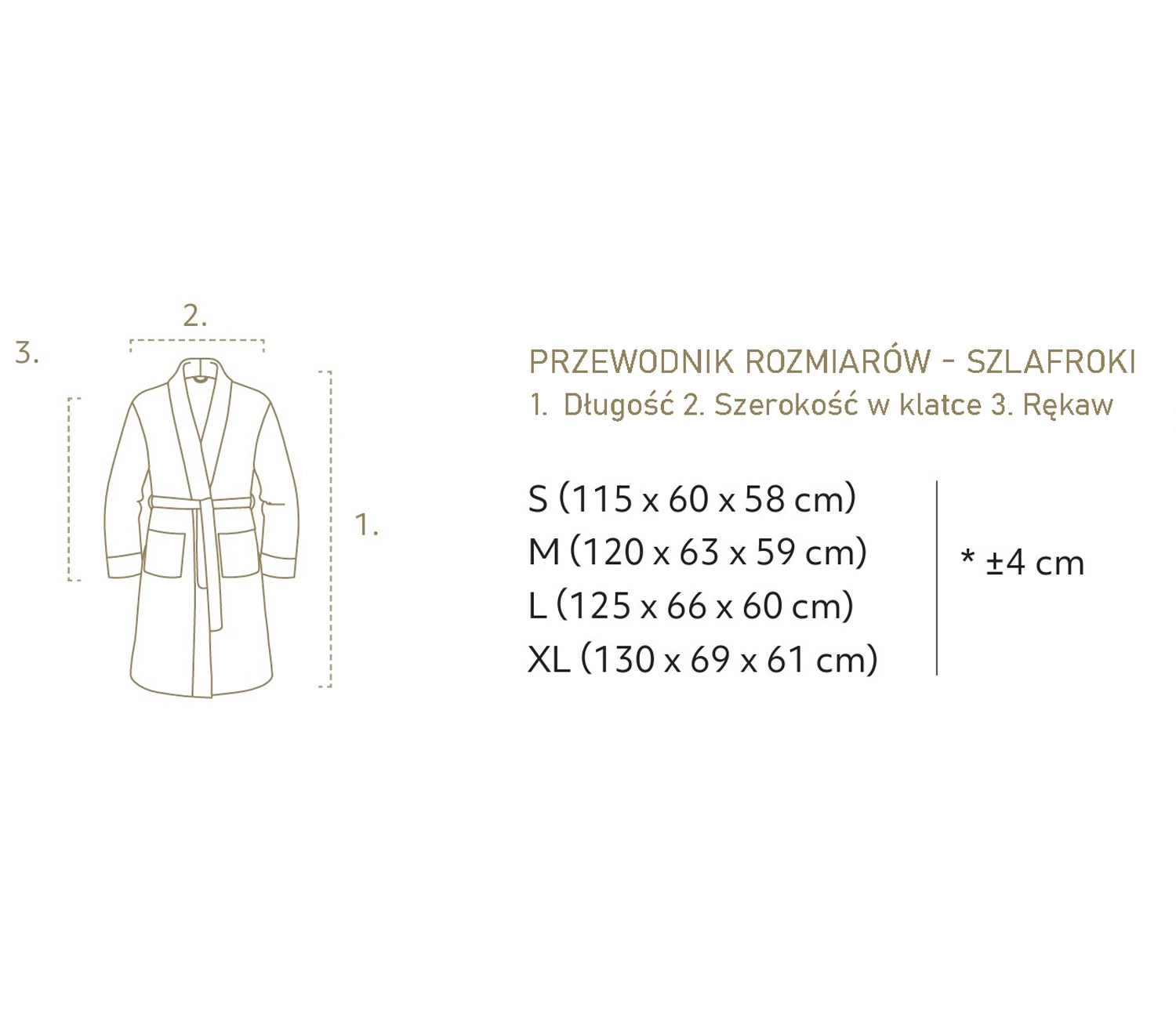 * Użytkowanie: Nie używaj szlafroka w pobliżu ostrych przedmiotów, które mogłyby spowodować jego uszkodzenie.