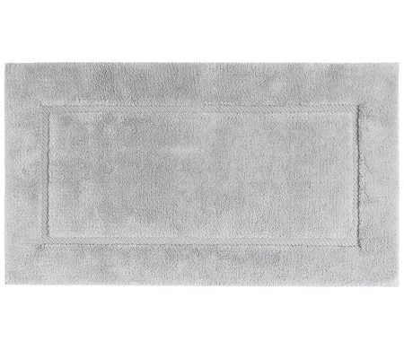 Dzięki specjalnej konstrukcji – tkanej podstawie połączonej z długim, miękkim runem – dywanik oferuje idealne wsparcie dla stóp i niezrównaną chłonność. Każdy krok na nim to doświadczenie miękkości i bezpieczeństwa. Jego jednolity odcień srebrnej szarości w połączeniu z elegancką ramką sprawia, że doskonale komponuje się zarówno w klasycznych, jak i nowoczesnych łazienkach.