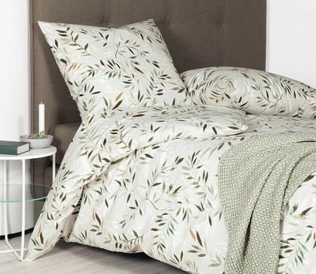Pościel flanelowa Davos 65137-06 marki Janine. Wzór w delikatne gałązki oliwne z listkami w odcieniach zielonych na jasnym tle. Wykonana z wysokiej jakości flaneli, ze 100% bawełny - miękkiej i przytulnej, która jest przyjemnie ciepła i reguluje temperaturę. Idealna na jesienno-zimową porę roku. Łatwa w pielęgnacji, zapinana na zamek błyskawiczny. Nie wymaga prasowania.
