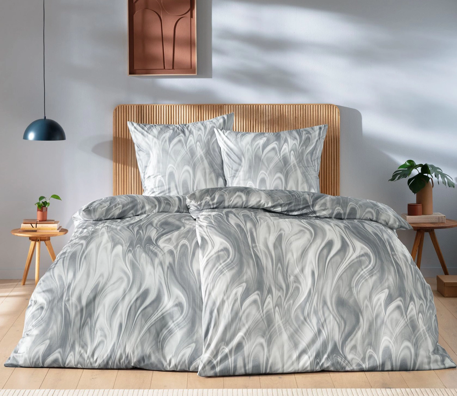 Pościel Klaas 6367 marki Estella. Wzór inspirowany marmurowymi motywami  w odcieniach koloru szarego.