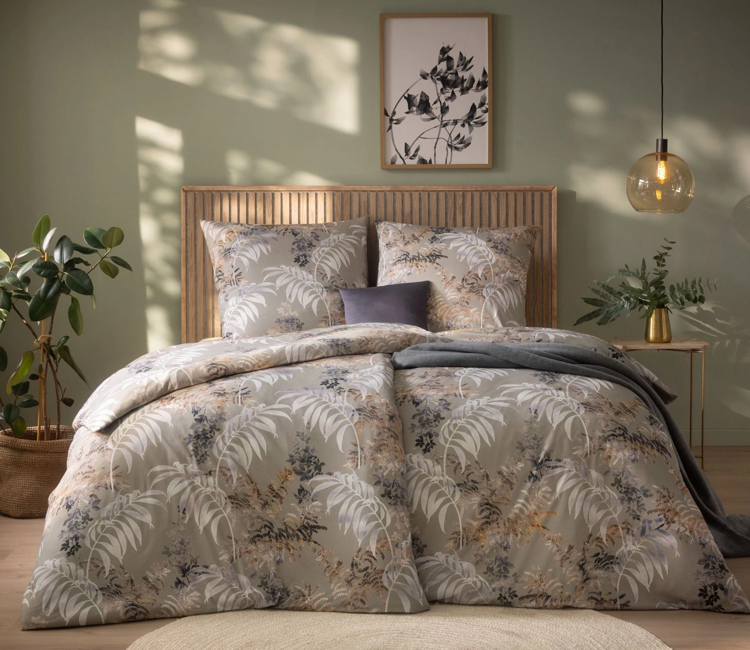 • Pościel Ronja w odcieniu khaki to połączenie elegancji z naturalnym urokiem. Wzór inspirowany roślinnością, z motywami paproci w kremowych oraz beżowych tonach, komponuje się z zielono-szarym tłem. Wykonana z najwyższej jakości bawełny o splocie jersey.