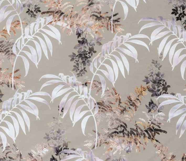 Pościel Ronja w odcieniu khaki to połączenie elegancji z naturalnym urokiem. Wzór inspirowany roślinnością, z subtelnymi motywami paproci i liści w kremowych, beżowych oraz błękitnych tonach, pięknie komponuje się z jasnym, zielonkawo-szarym tłem. Ta harmonijna kolorystyka wprowadza do sypialni spokojną, nowoczesną atmosferę, idealną do stworzenia przestrzeni sprzyjającej wypoczynkowi.